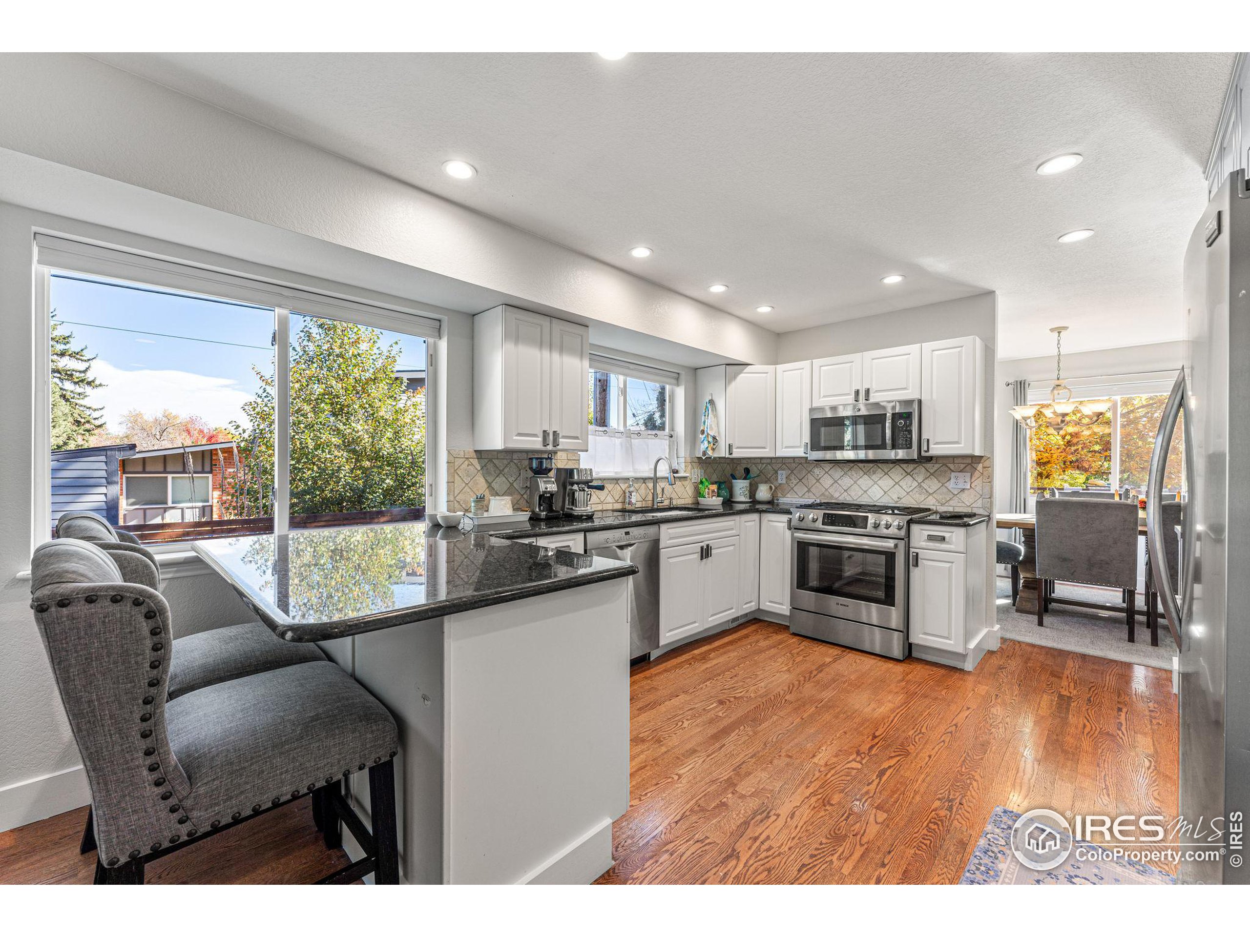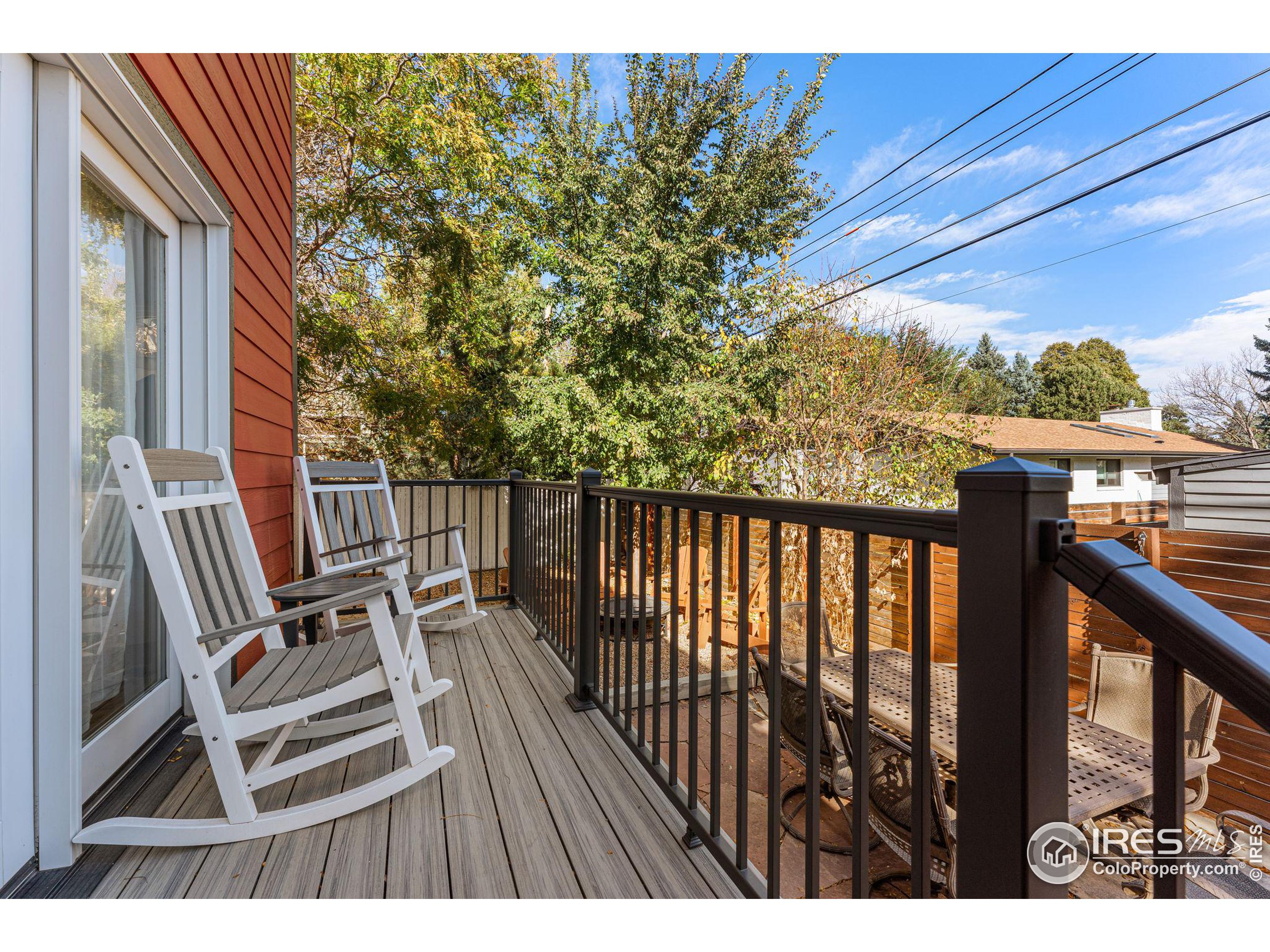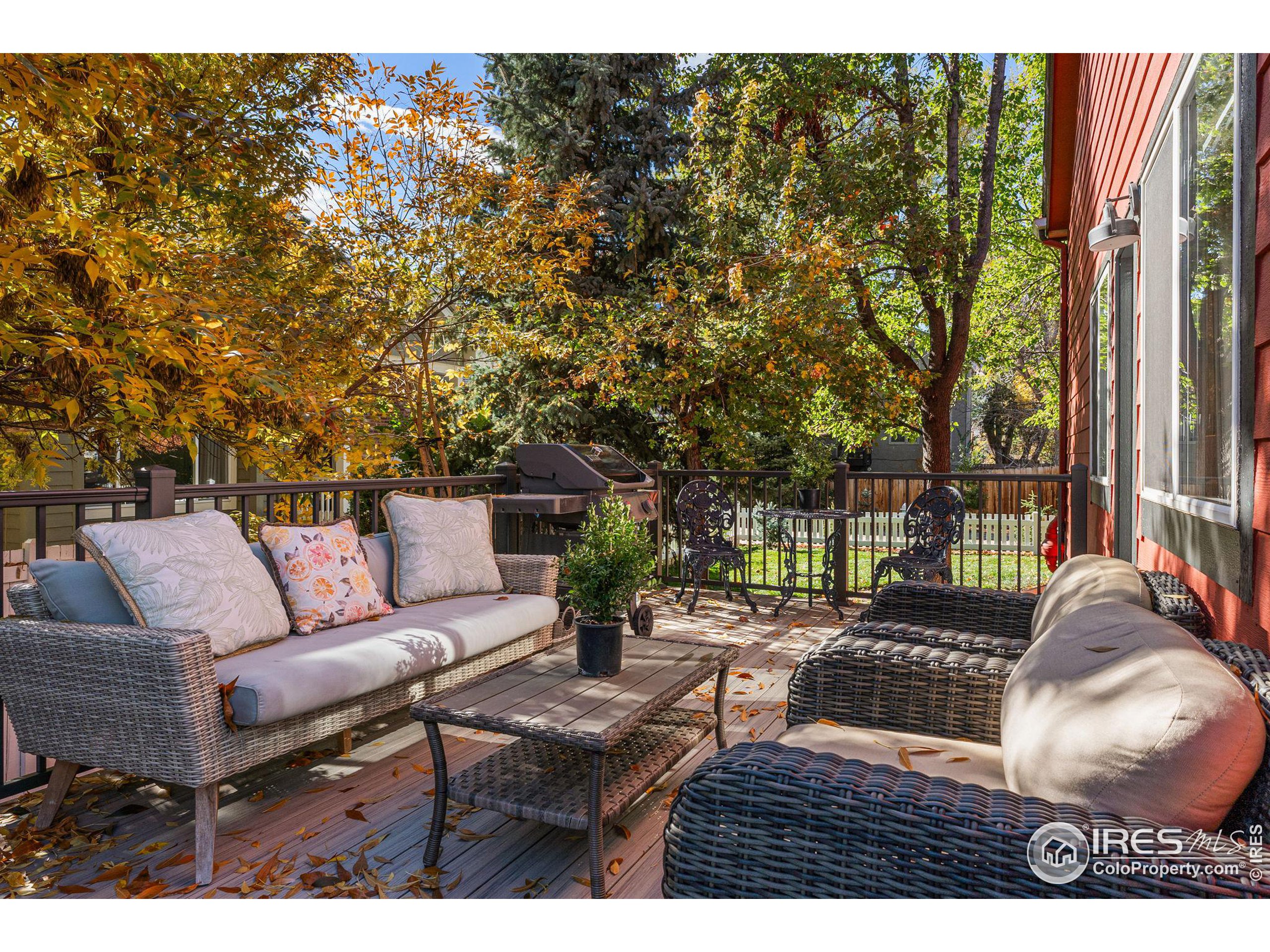 This meticulously maintained property is located just south of Elder Ave, down a private driveway of three attractive homes. As you approach 1282 Elder, you are greeted by a lovely fenced yard with two porch swings and large, mature trees as well as a newly painted exterior. The interior is flooded with natural light, generously sized windows and vaulted ceilings in the living room, creating a clean, bright and airy feel. The main level features hardwood floors throughout and a functional and comfortable open floor plan, with large decks off both the living room and family room. The kitchen offers ample cabinetry, an eat-in island, stainless appliances and tons of natural light. Sliding glass doors connect the kitchen to the deck and yard, creating an easy indoor-outdoor lifestyle. The fully fenced yard offers a variety of trees, a patio wired for a hot tub, a fire pit entertainment area and two large decks with eastern morning sun, southern exposure and a front yard facing west toward the mountains and sunsets. The family room features a cozy gas fireplace, built-ins and easy access to the yard. Upstairs you will find the primary suite with walk-in closet, bathroom with mtn views, two additional bedrooms with ample natural light and a shared full bathroom. The fully finished basement offers a large rec room, office area, storage closet, 4th bedroom and full bath. Generously sized two car garage for all your cars and toys. This home is turnkey and offers easy, modern comfort in a highly sought after location. Only a block away from the North Boulder Rec Center, a few blocks to the Ideal Market Plaza and North Boulder Park, and quick access to Sanitas trails and Pearl Street.
