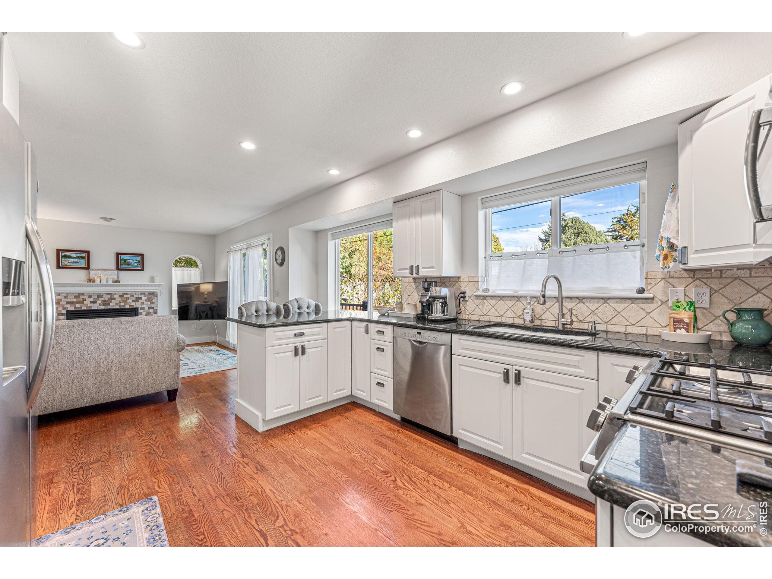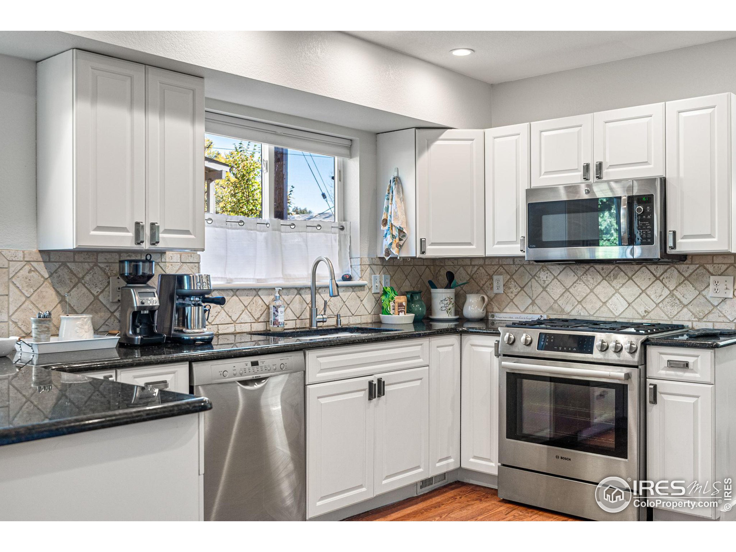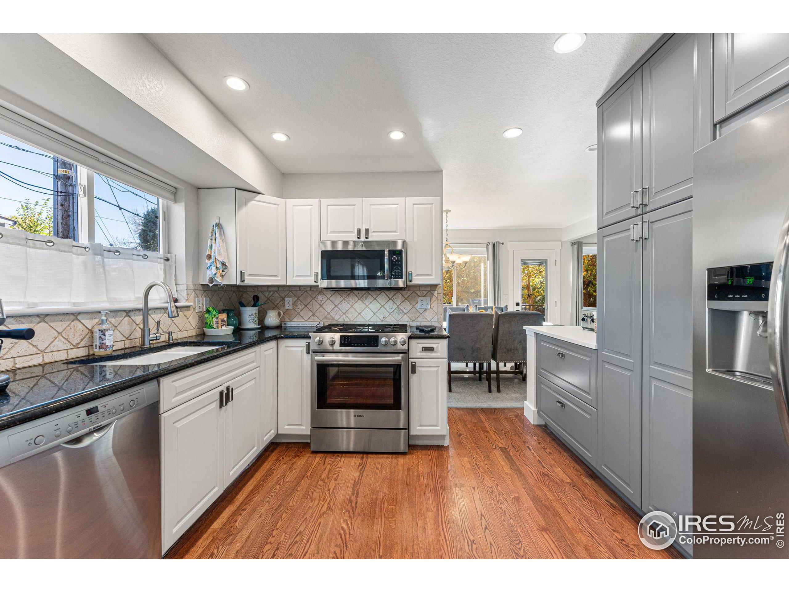 This meticulously maintained property is located just south of Elder Ave, down a private driveway of three attractive homes. As you approach 1282 Elder, you are greeted by a lovely fenced yard with two porch swings and large, mature trees as well as a newly painted exterior. The interior is flooded with natural light, generously sized windows and vaulted ceilings in the living room, creating a clean, bright and airy feel. The main level features hardwood floors throughout and a functional and comfortable open floor plan, with large decks off both the living room and family room. The kitchen offers ample cabinetry, an eat-in island, stainless appliances and tons of natural light. Sliding glass doors connect the kitchen to the deck and yard, creating an easy indoor-outdoor lifestyle. The fully fenced yard offers a variety of trees, a patio wired for a hot tub, a fire pit entertainment area and two large decks with eastern morning sun, southern exposure and a front yard facing west toward the mountains and sunsets. The family room features a cozy gas fireplace, built-ins and easy access to the yard. Upstairs you will find the primary suite with walk-in closet, bathroom with mtn views, two additional bedrooms with ample natural light and a shared full bathroom. The fully finished basement offers a large rec room, office area, storage closet, 4th bedroom and full bath. Generously sized two car garage for all your cars and toys. This home is turnkey and offers easy, modern comfort in a highly sought after location. Only a block away from the North Boulder Rec Center, a few blocks to the Ideal Market Plaza and North Boulder Park, and quick access to Sanitas trails and Pearl Street.