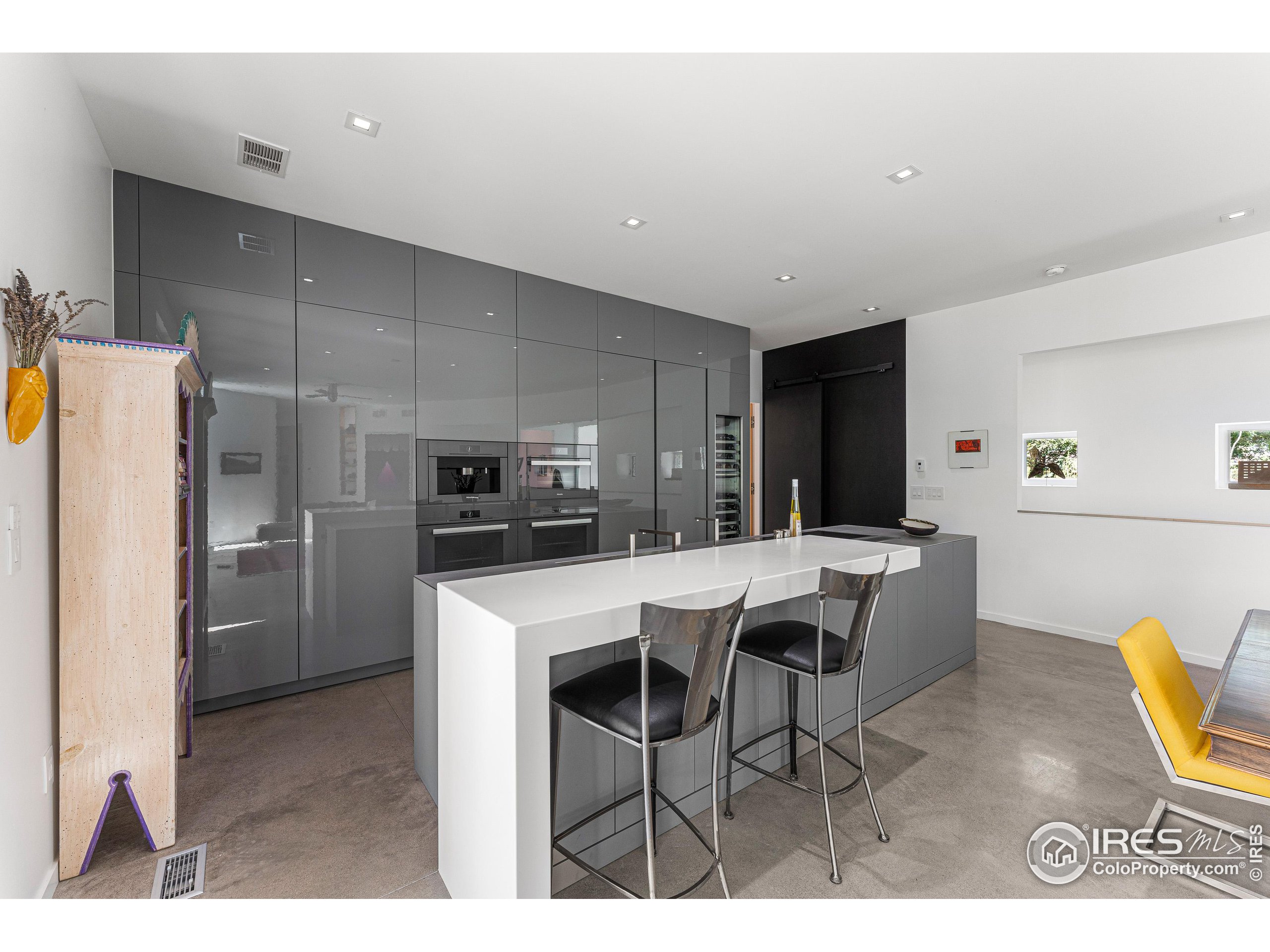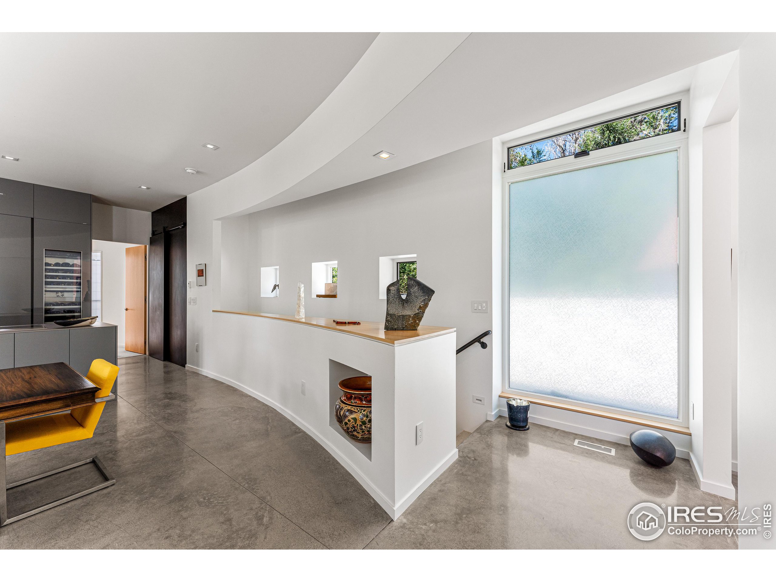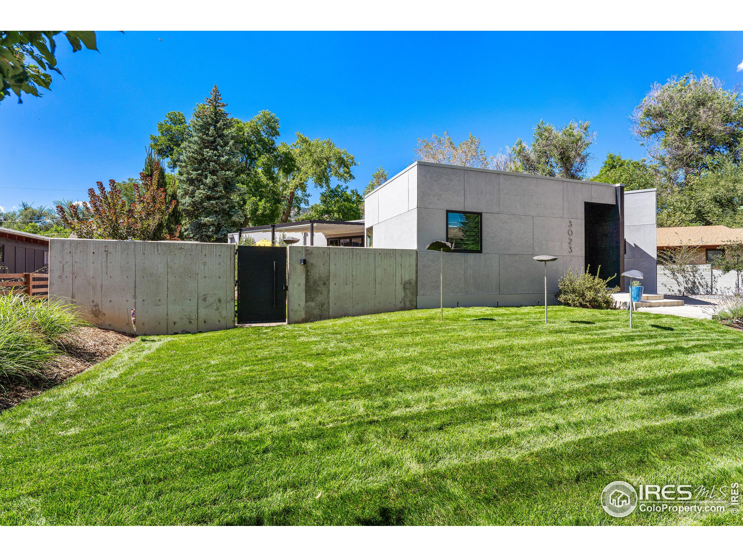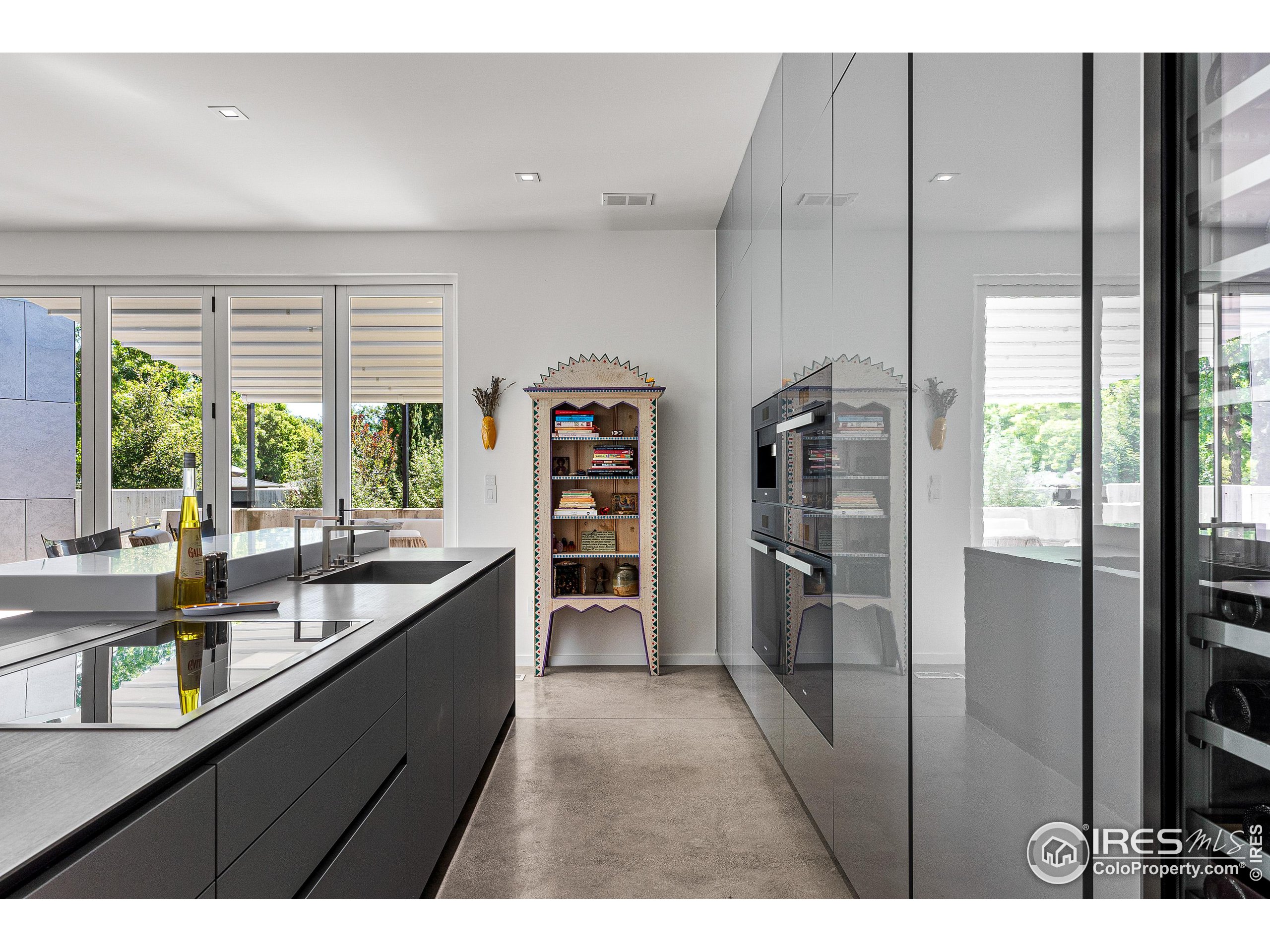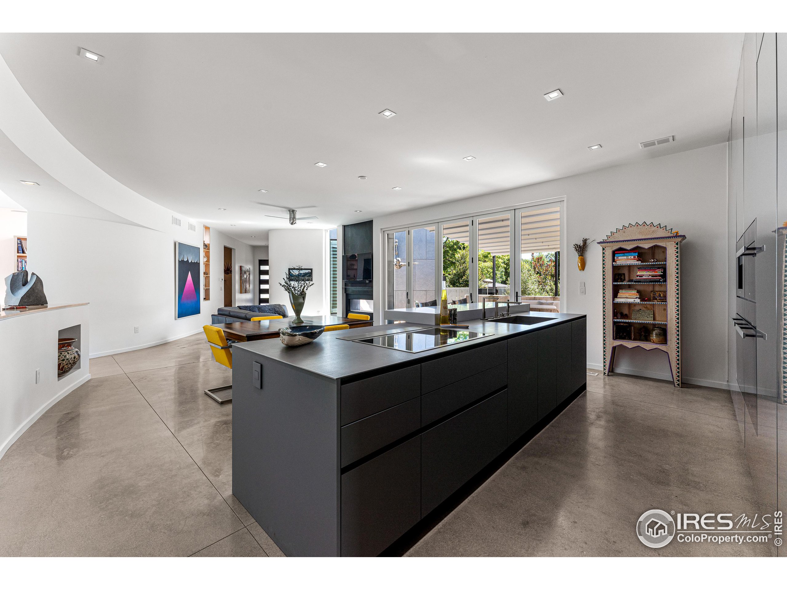 This incredible custom home lives like an art gallery. Every detail was thoughtfully and intentionally selected and executed with care. From the curved wall that forms the spine of the house to the Gaggenau kitchen, artful and high performing elements integrate throughout creating an exceptional living experience. The main level features an open living room, dining area and chef's kitchen all of which open to the patio through a wall of doors, with a retractable awning and two-sided fireplace. In the kitchen you'll find a Gaggenau range, separate built-in refrigerator, freezer and wine refrigerator, Miele double ovens, convection oven, espresso maker and dishwasher, steel countertop, a long island with generous storage on both sides, a pantry and floor to ceiling custom cabinetry. The serene main level primary suite leads to a private patio with in-ground hot tub, a beautiful bathroom and walk-in closet with curved custom sliding door. The 2nd bedroom with en suite bathroom, artful powder room, office with stunning circular sky light, mudroom and laundry complete the main level. The lower level consists of a spacious family room with wet bar, beverage fridge, two fridge drawers, 3rd bedroom with bathroom, and a flex room that could function as a media room/dark room/ 2nd office. The fully fenced yard has a custom wood and steel fence with privacy gates, mature trees, multiple patios, and great southern exposure. The Community Gardens, NoBo Rec Center, bike path and creek are down the street with the Ideal Market Shopping area only a few blocks away.