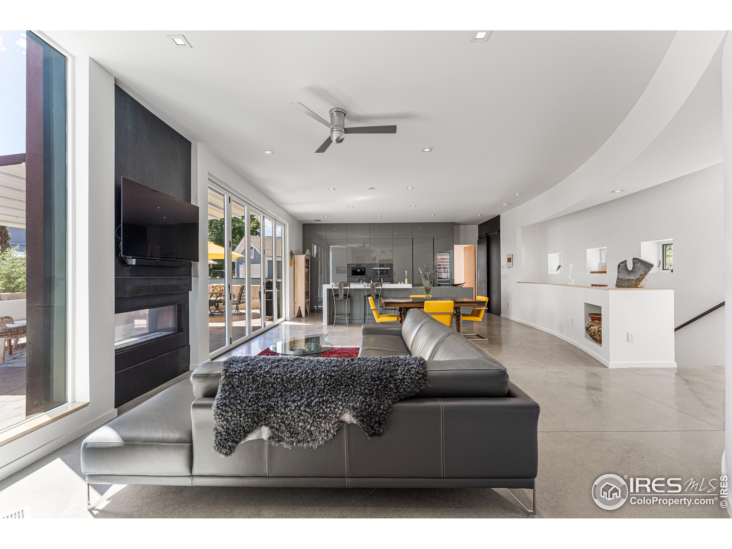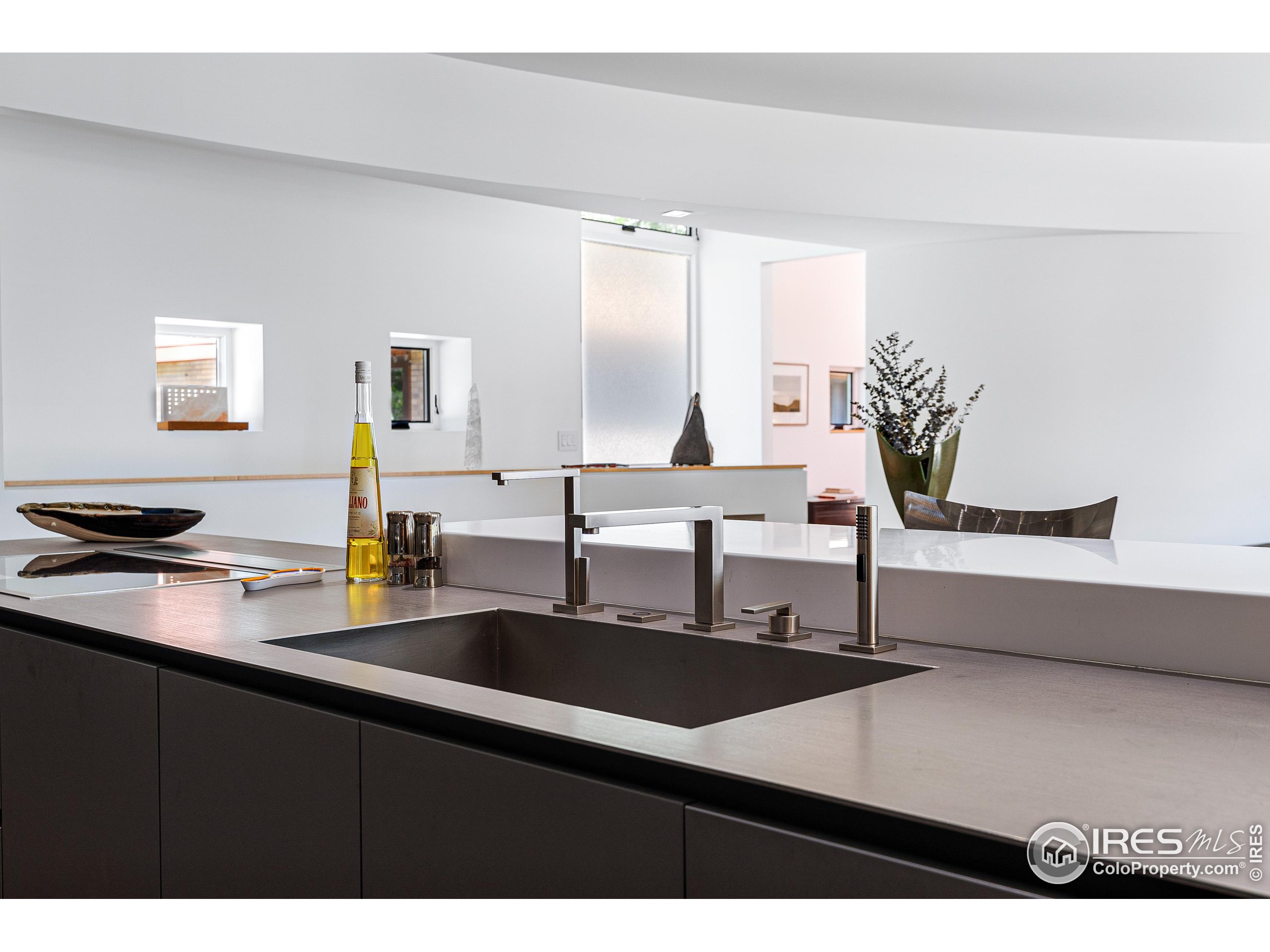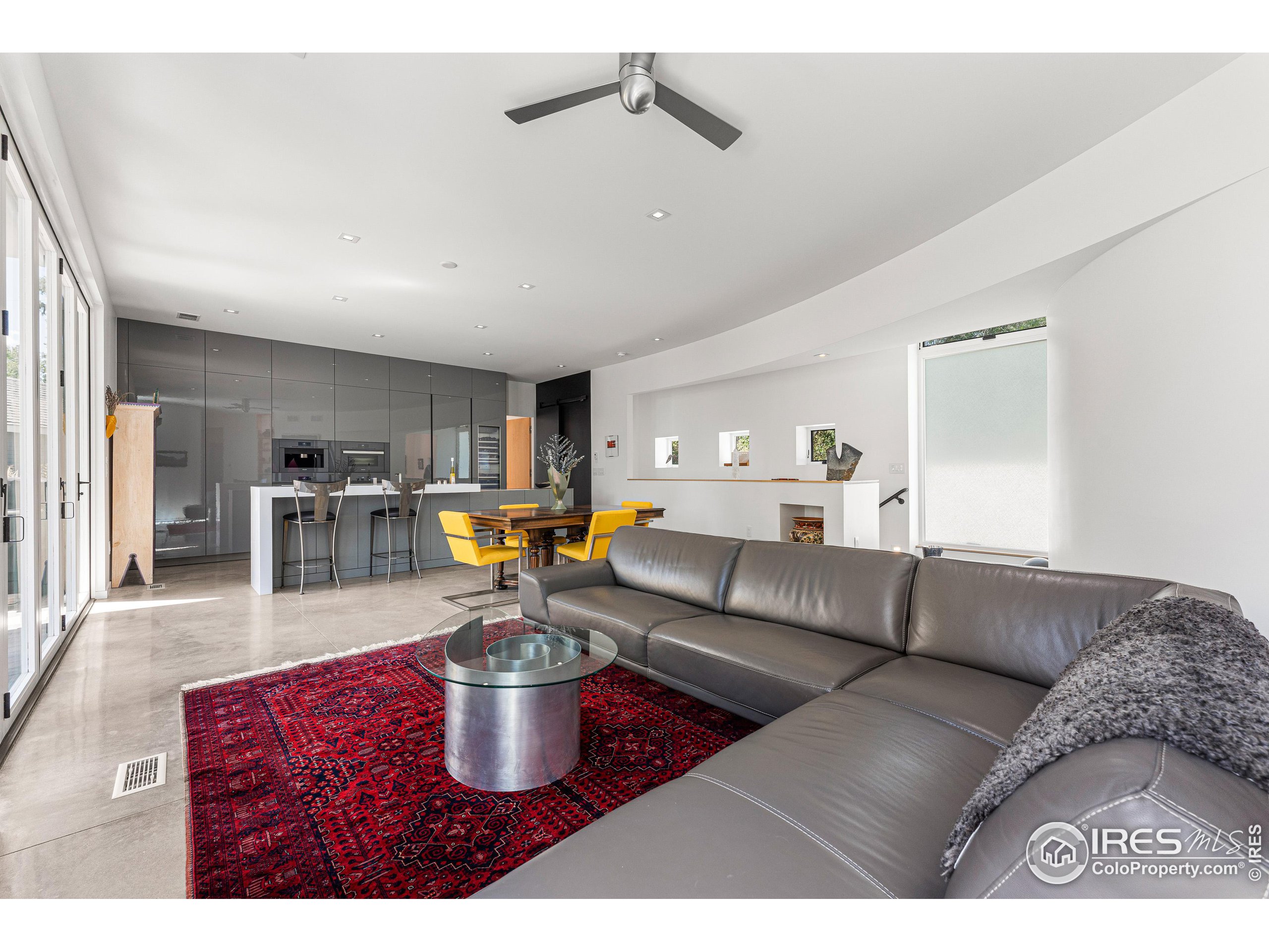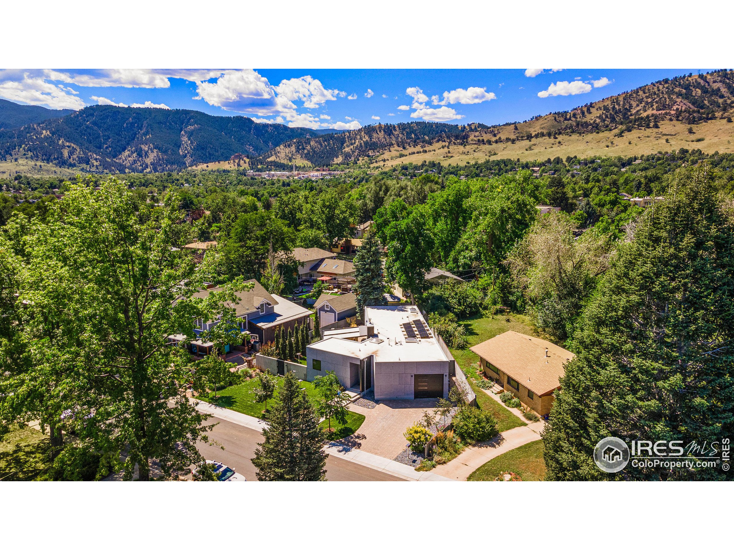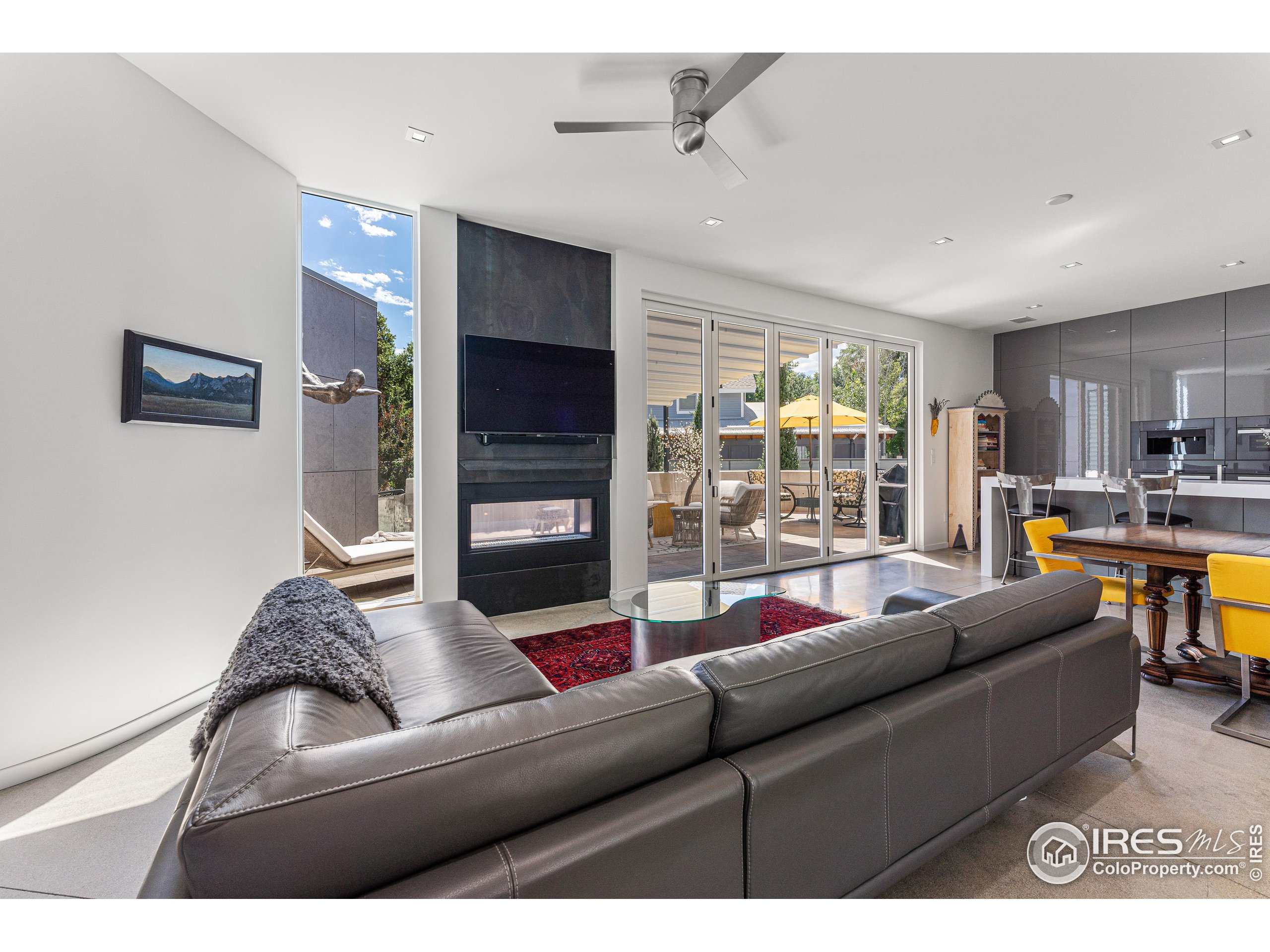 This incredible custom home lives like an art gallery. Every detail was thoughtfully and intentionally selected and executed with care. From the curved wall that forms the spine of the house to the Gaggenau kitchen, artful and high performing elements integrate throughout creating an exceptional living experience. The main level features an open living room, dining area and chef's kitchen all of which open to the patio through a wall of doors, with a retractable awning and two-sided fireplace. In the kitchen you'll find a Gaggenau range, separate built-in refrigerator, freezer and wine refrigerator, Miele double ovens, convection oven, espresso maker and dishwasher, steel countertop, a long island with generous storage on both sides, a pantry and floor to ceiling custom cabinetry. The serene main level primary suite leads to a private patio with in-ground hot tub, a beautiful bathroom and walk-in closet with curved custom sliding door. The 2nd bedroom with en suite bathroom, artful powder room, office with stunning circular sky light, mudroom and laundry complete the main level. The lower level consists of a spacious family room with wet bar, beverage fridge, two fridge drawers, 3rd bedroom with bathroom, and a flex room that could function as a media room/dark room/ 2nd office. The fully fenced yard has a custom wood and steel fence with privacy gates, mature trees, multiple patios, and great southern exposure. The Community Gardens, NoBo Rec Center, bike path and creek are down the street with the Ideal Market Shopping area only a few blocks away.