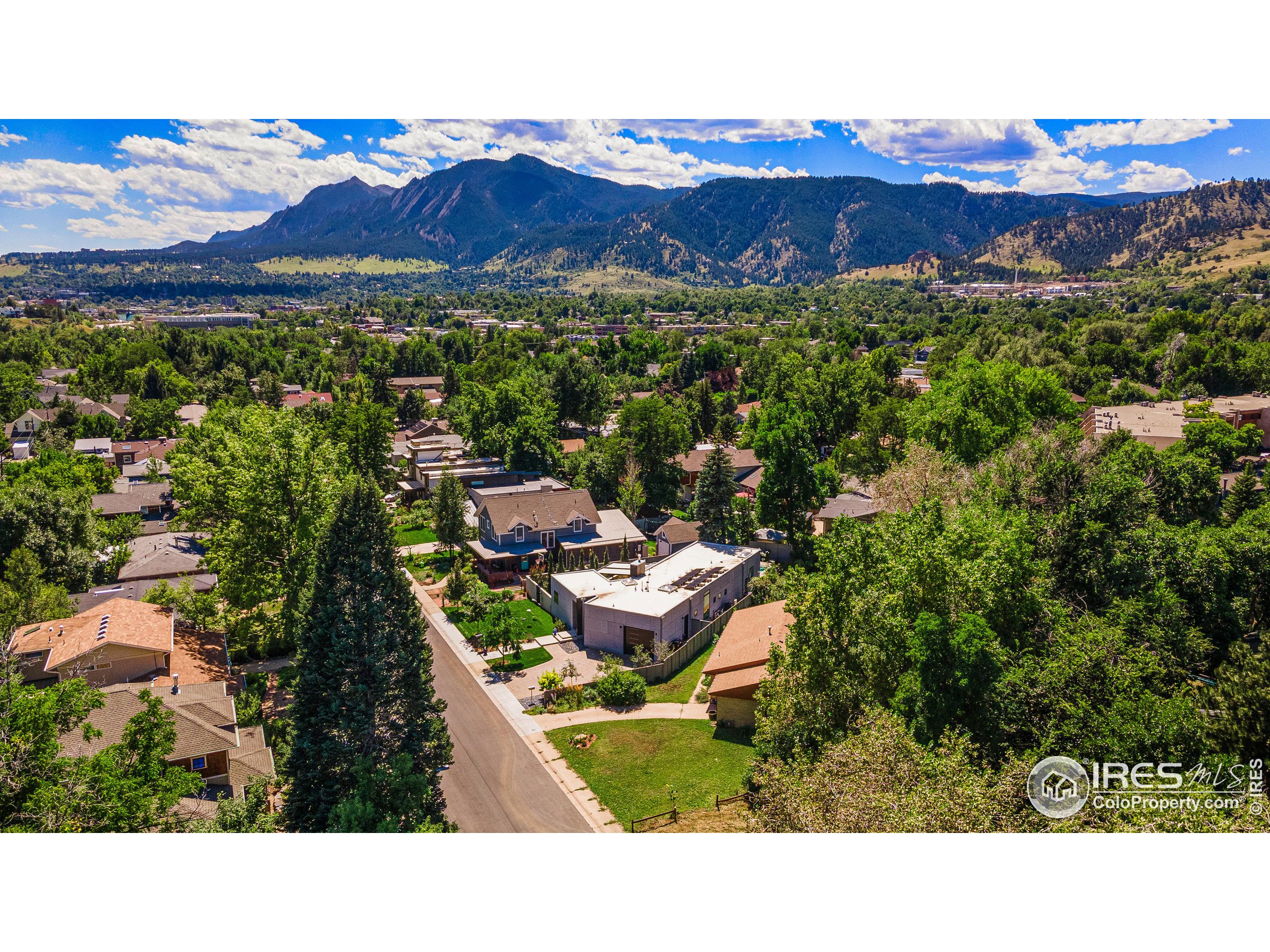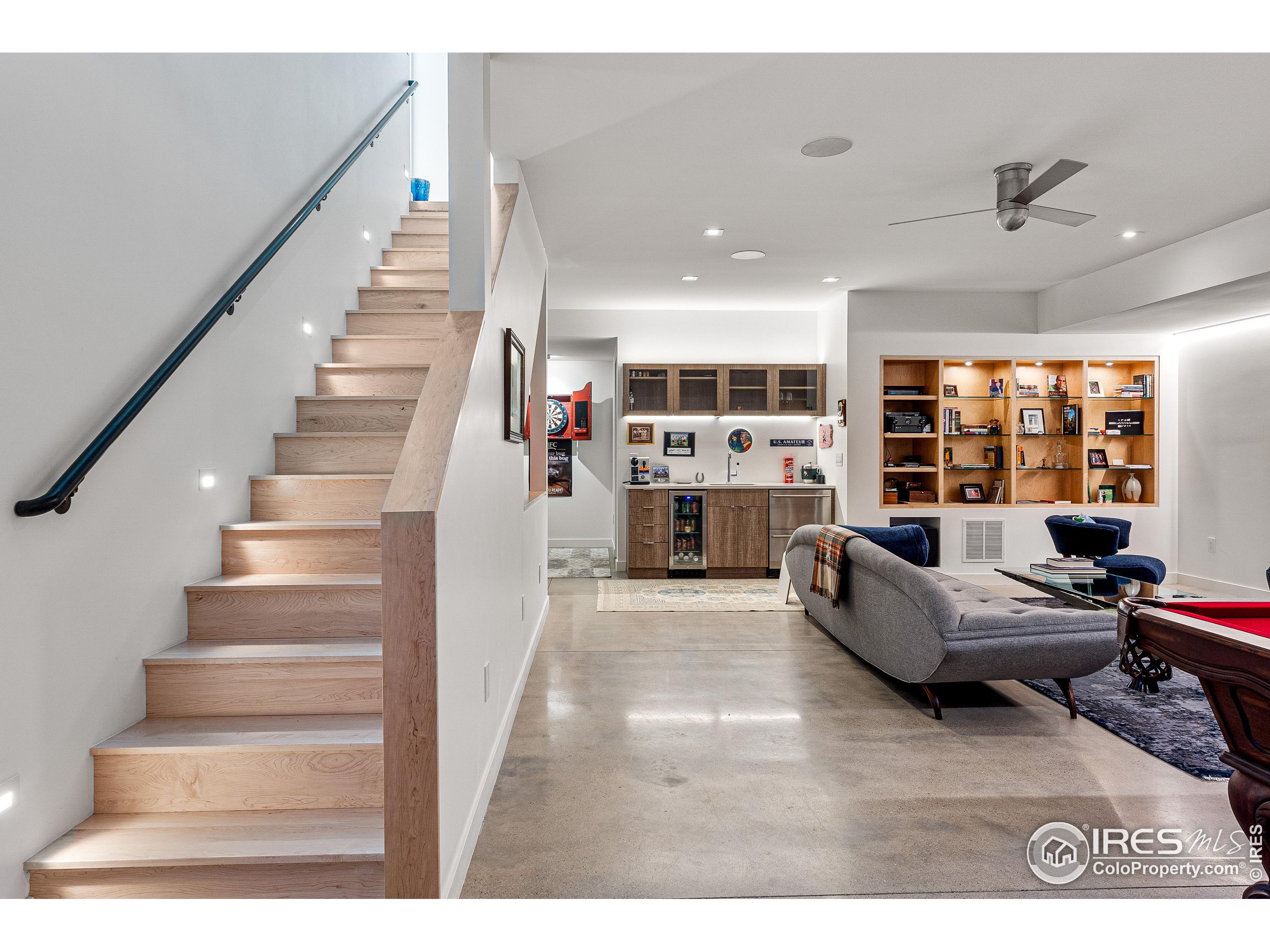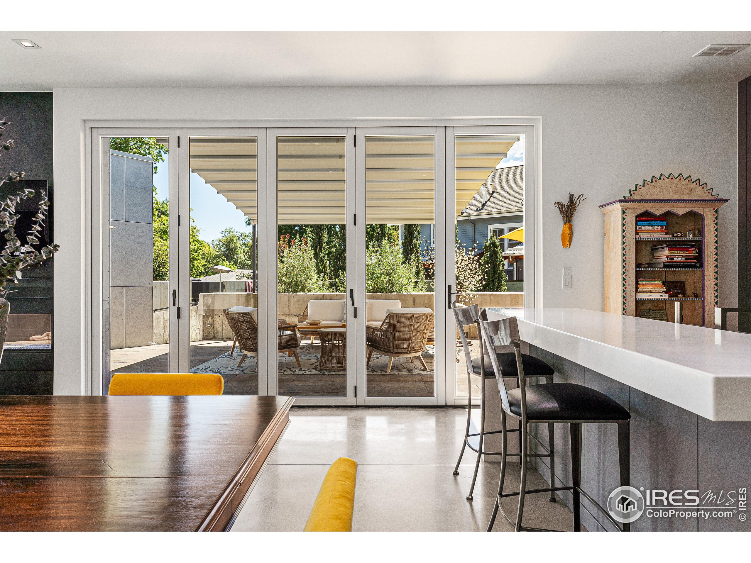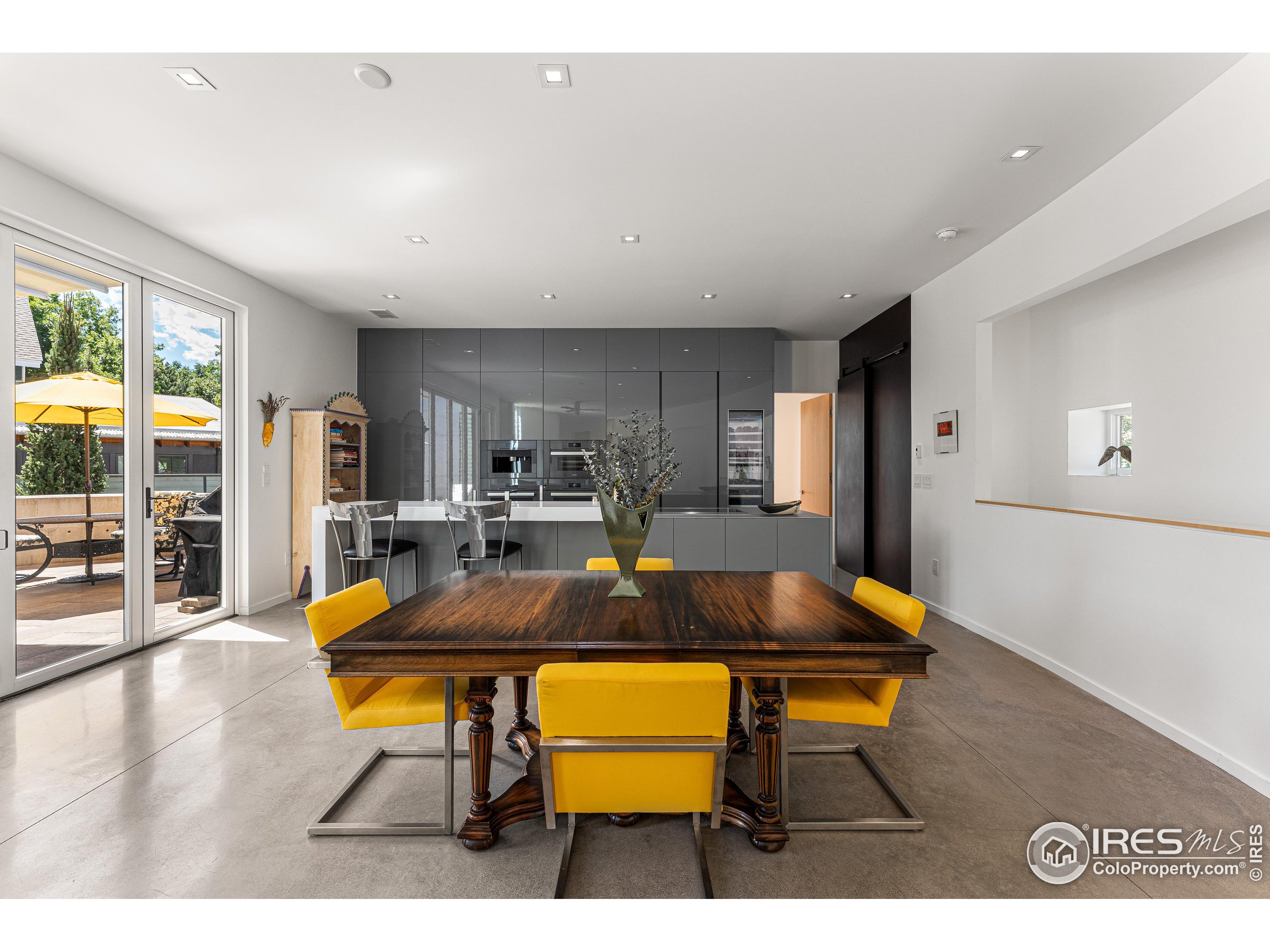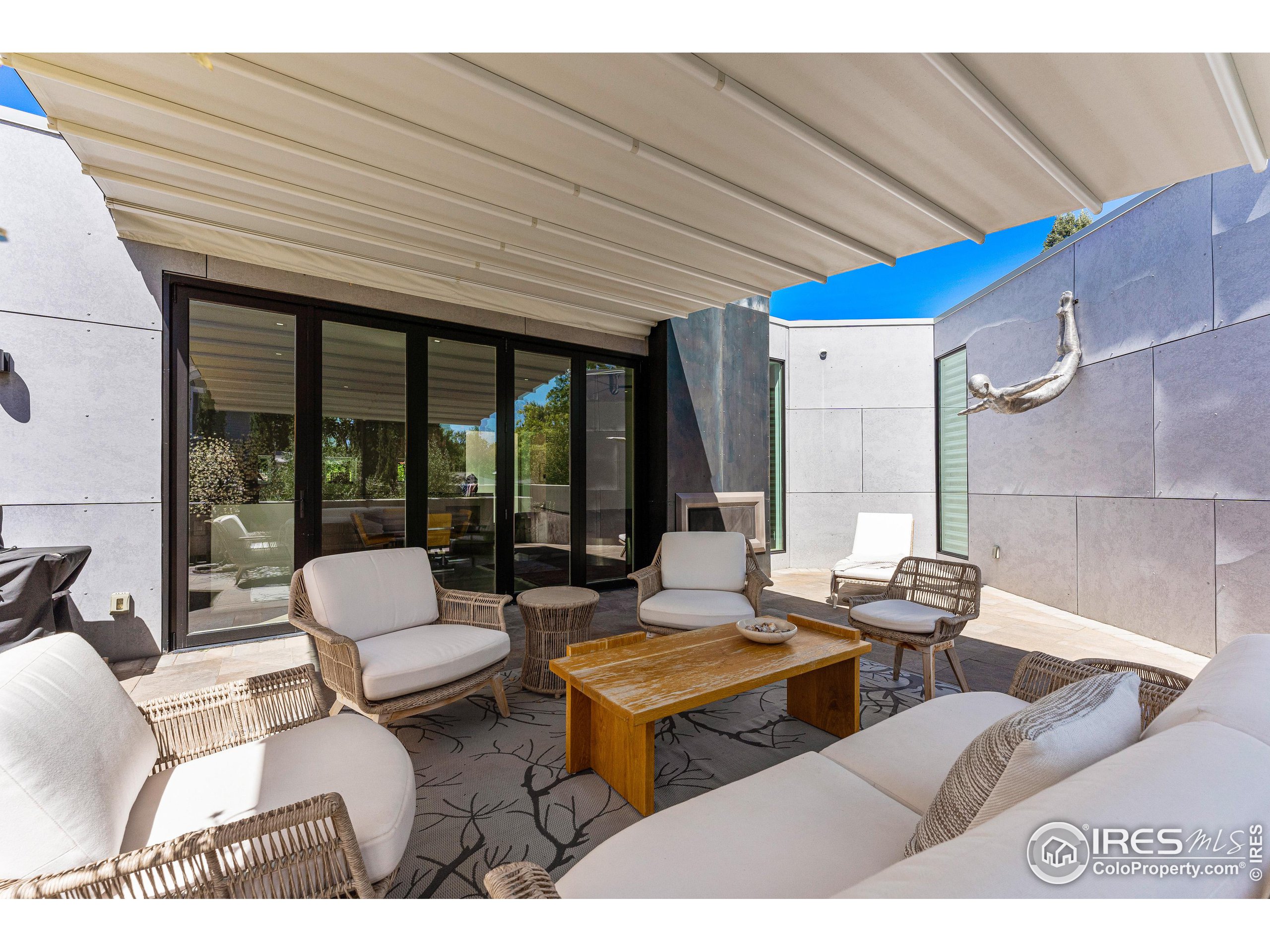 This incredible custom home lives like an art gallery. Every detail was thoughtfully and intentionally selected and executed with care. From the curved wall that forms the spine of the house to the Gaggenau kitchen, artful and high performing elements integrate throughout creating an exceptional living experience. The main level features an open living room, dining area and chef's kitchen all of which open to the patio through a wall of doors, with a retractable awning and two-sided fireplace. In the kitchen you'll find a Gaggenau range, separate built-in refrigerator, freezer and wine refrigerator, Miele double ovens, convection oven, espresso maker and dishwasher, steel countertop, a long island with generous storage on both sides, a pantry and floor to ceiling custom cabinetry. The serene main level primary suite leads to a private patio with in-ground hot tub, a beautiful bathroom and walk-in closet with curved custom sliding door. The 2nd bedroom with en suite bathroom, artful powder room, office with stunning circular sky light, mudroom and laundry complete the main level. The lower level consists of a spacious family room with wet bar, beverage fridge, two fridge drawers, 3rd bedroom with bathroom, and a flex room that could function as a media room/dark room/ 2nd office. The fully fenced yard has a custom wood and steel fence with privacy gates, mature trees, multiple patios, and great southern exposure. The Community Gardens, NoBo Rec Center, bike path and creek are down the street with the Ideal Market Shopping area only a few blocks away.
