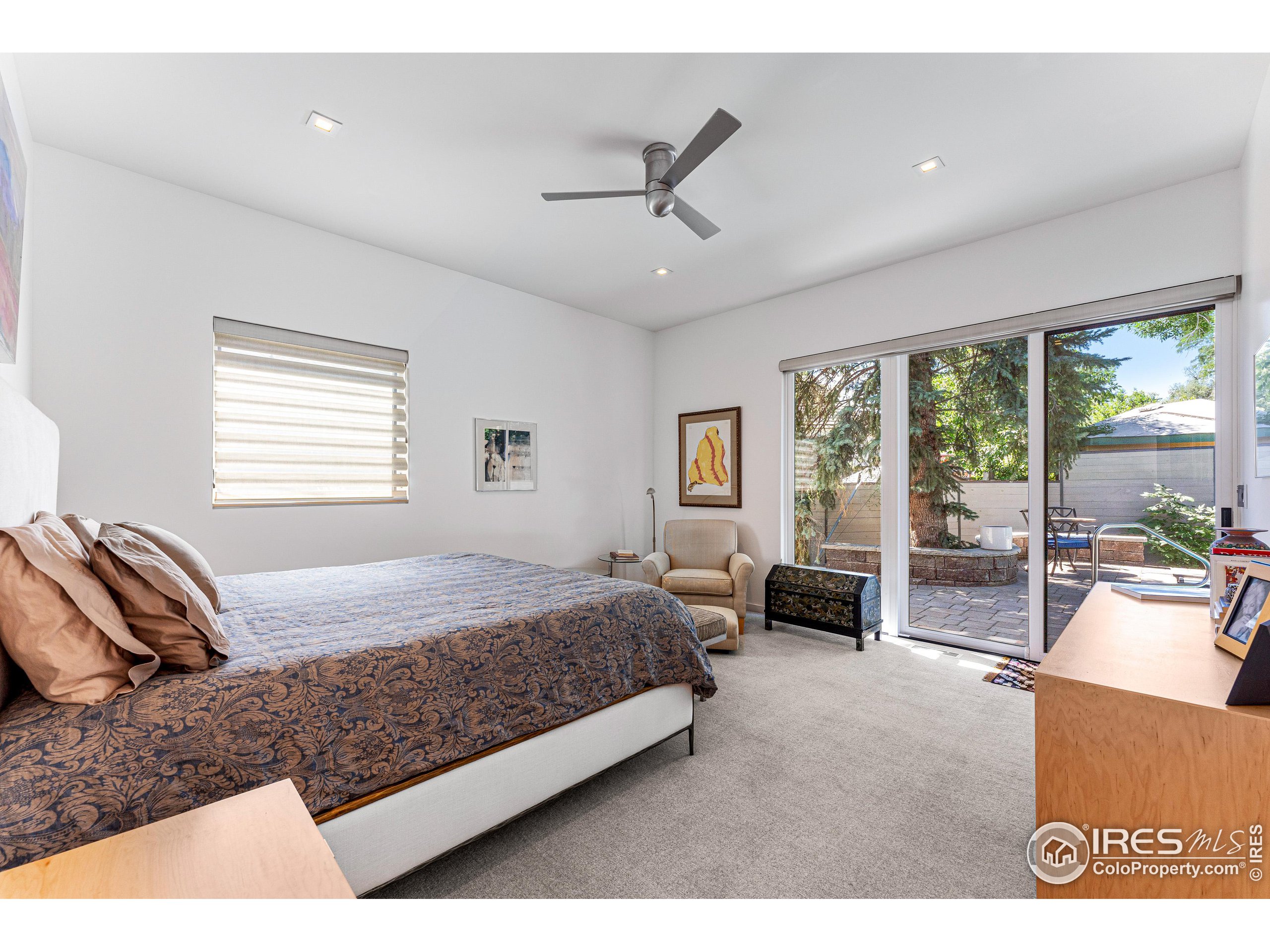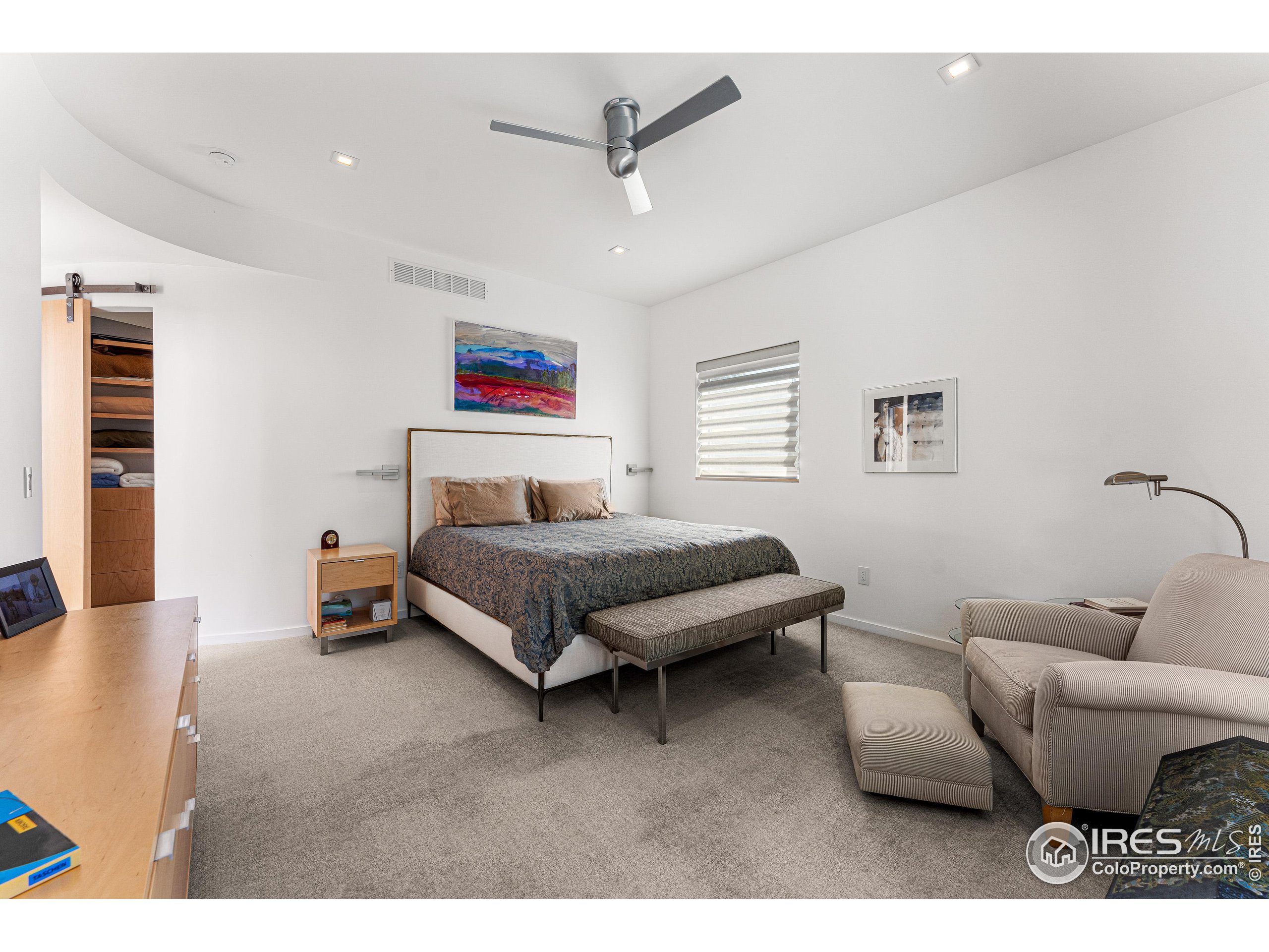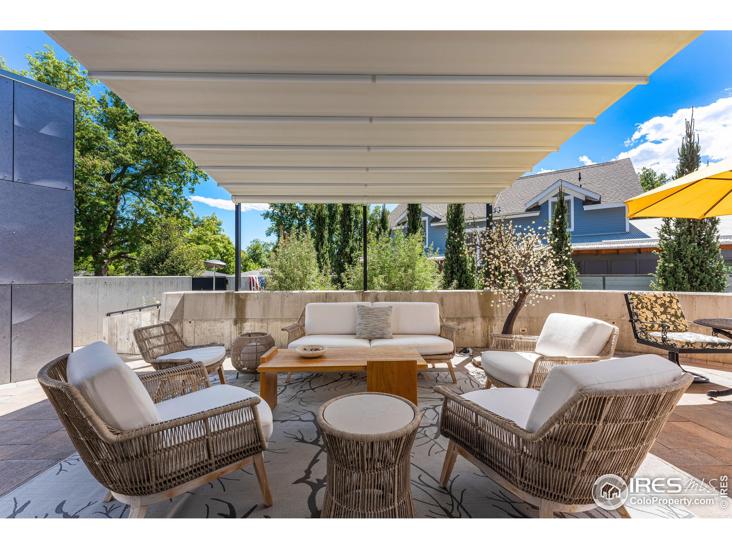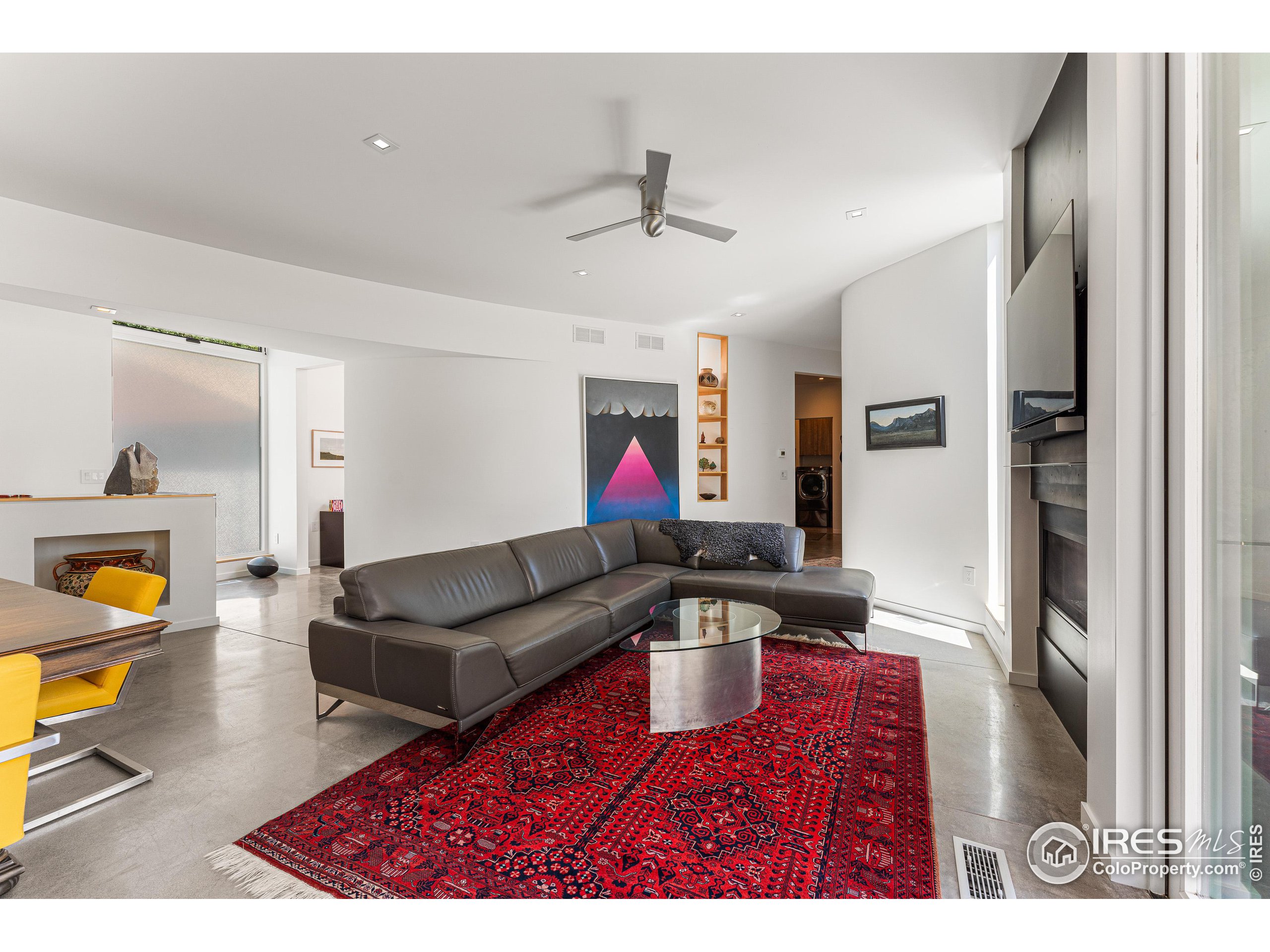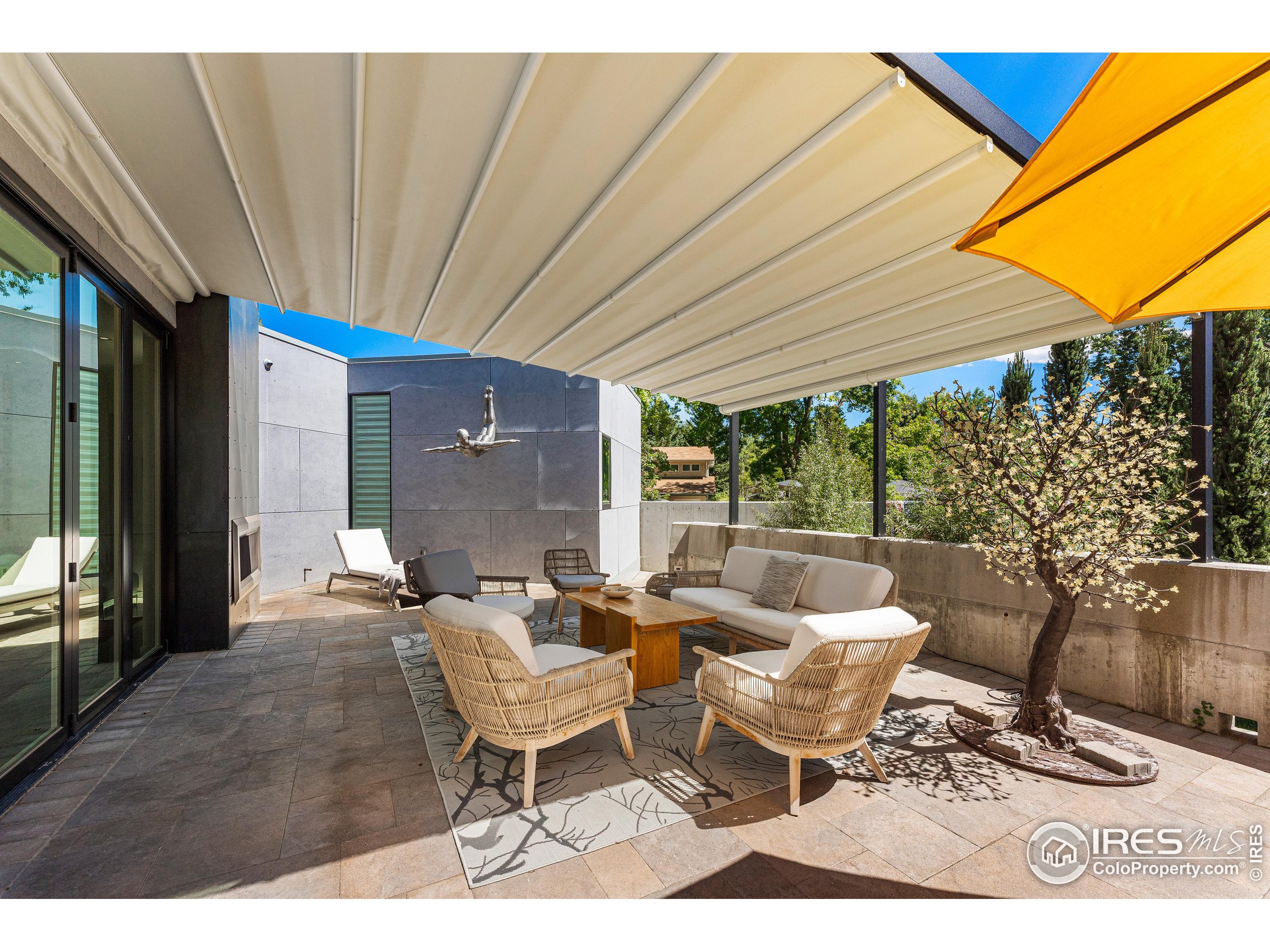 This incredible custom home lives like an art gallery. Every detail was thoughtfully and intentionally selected and executed with care. From the curved wall that forms the spine of the house to the Gaggenau kitchen, artful and high performing elements integrate throughout creating an exceptional living experience. The main level features an open living room, dining area and chef's kitchen all of which open to the patio through a wall of doors, with a retractable awning and two-sided fireplace. In the kitchen you'll find a Gaggenau range, separate built-in refrigerator, freezer and wine refrigerator, Miele double ovens, convection oven, espresso maker and dishwasher, steel countertop, a long island with generous storage on both sides, a pantry and floor to ceiling custom cabinetry. The serene main level primary suite leads to a private patio with in-ground hot tub, a beautiful bathroom and walk-in closet with curved custom sliding door. The 2nd bedroom with en suite bathroom, artful powder room, office with stunning circular sky light, mudroom and laundry complete the main level. The lower level consists of a spacious family room with wet bar, beverage fridge, two fridge drawers, 3rd bedroom with bathroom, and a flex room that could function as a media room/dark room/ 2nd office. The fully fenced yard has a custom wood and steel fence with privacy gates, mature trees, multiple patios, and great southern exposure. The Community Gardens, NoBo Rec Center, bike path and creek are down the street with the Ideal Market Shopping area only a few blocks away.