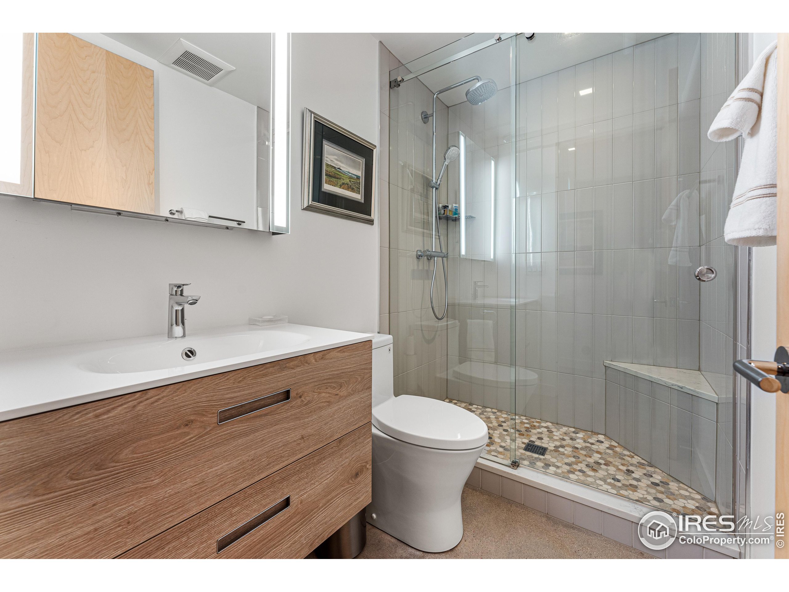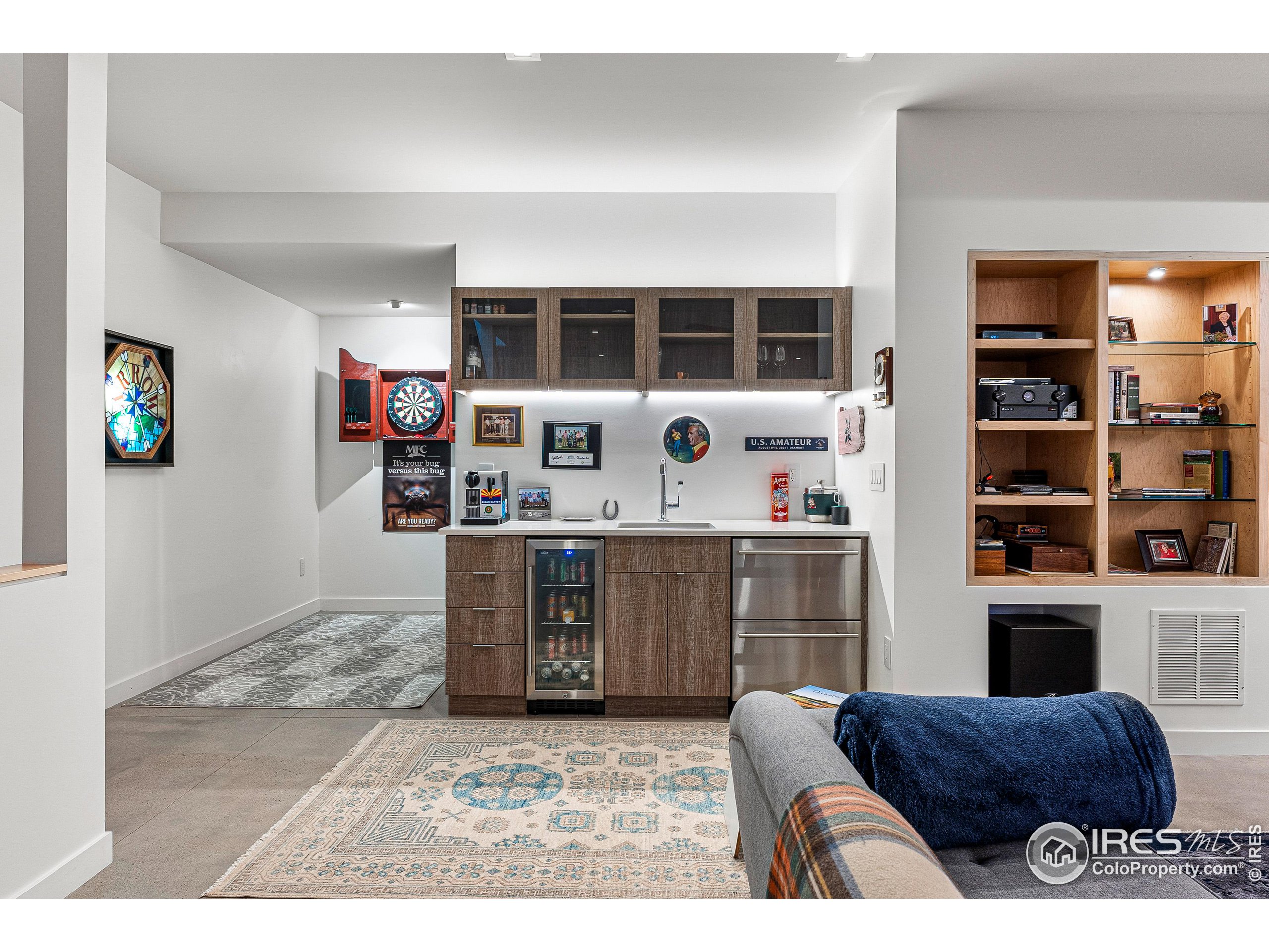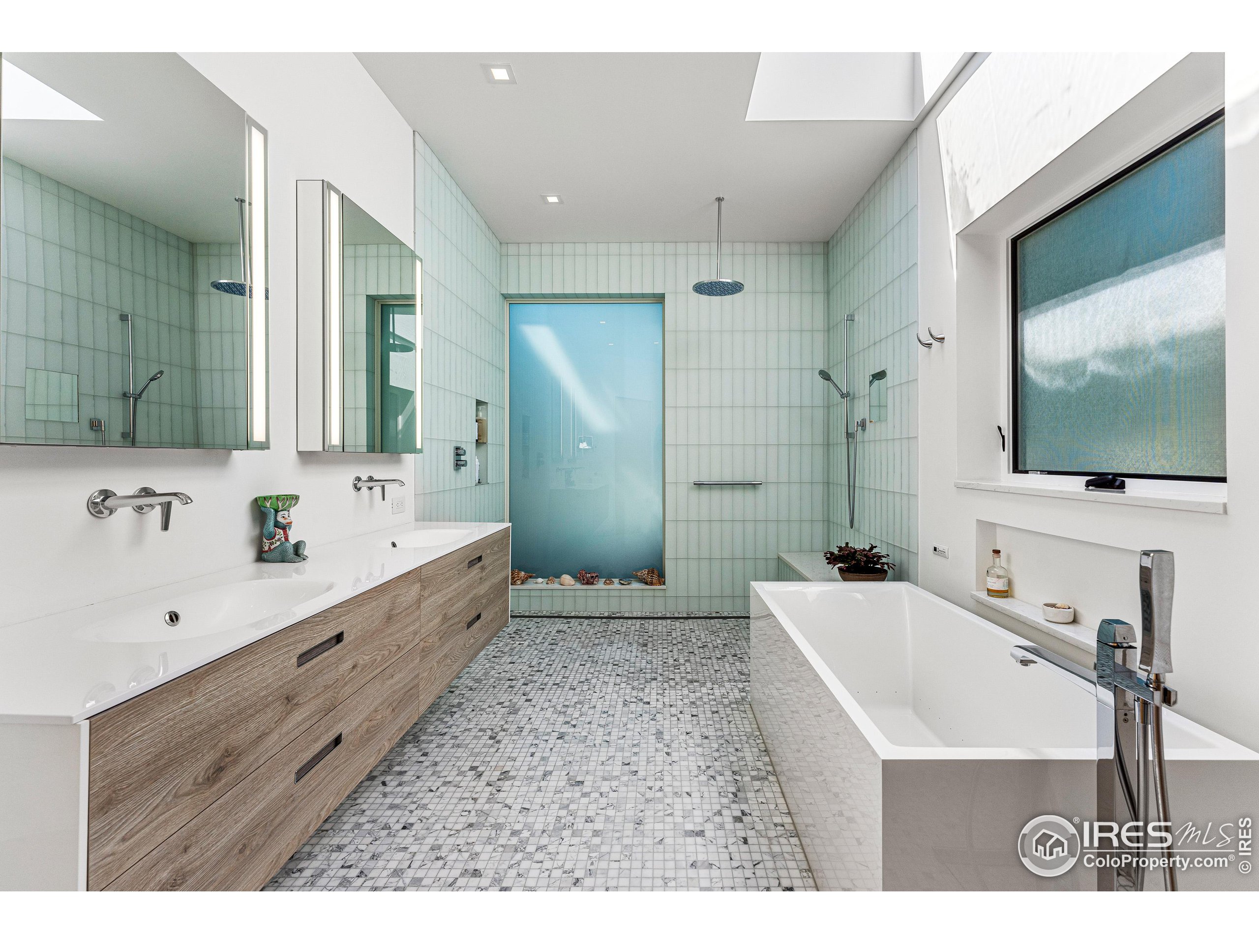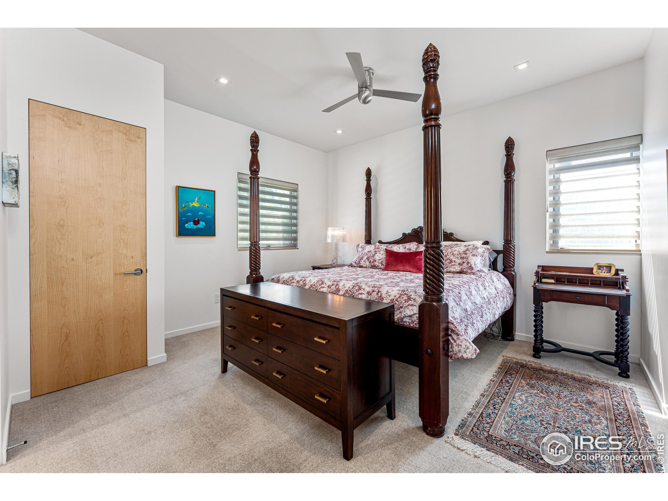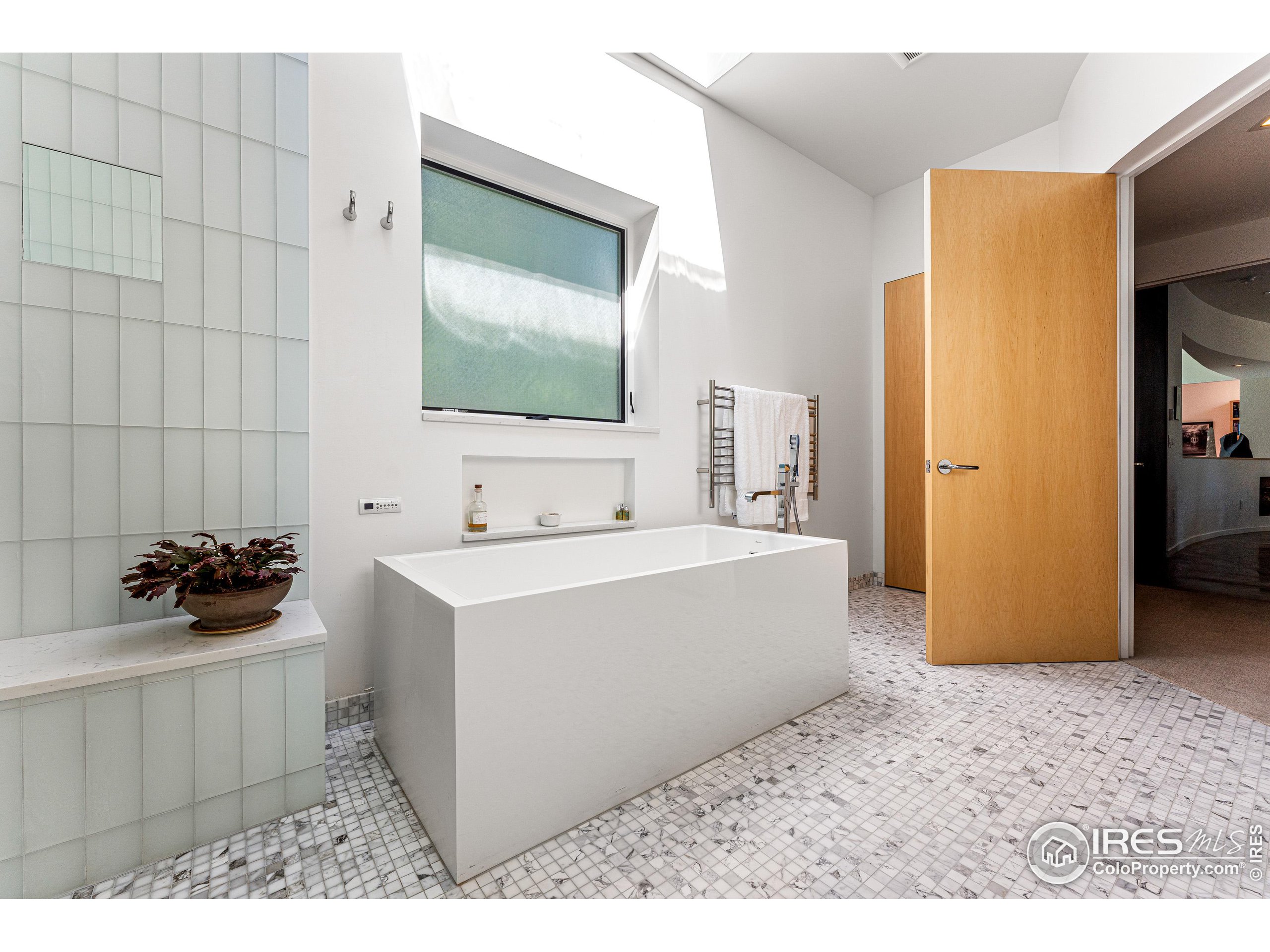 This incredible custom home lives like an art gallery. Every detail was thoughtfully and intentionally selected and executed with care. From the curved wall that forms the spine of the house to the Gaggenau kitchen, artful and high performing elements integrate throughout creating an exceptional living experience. The main level features an open living room, dining area and chef's kitchen all of which open to the patio through a wall of doors, with a retractable awning and two-sided fireplace. In the kitchen you'll find a Gaggenau range, separate built-in refrigerator, freezer and wine refrigerator, Miele double ovens, convection oven, espresso maker and dishwasher, steel countertop, a long island with generous storage on both sides, a pantry and floor to ceiling custom cabinetry. The serene main level primary suite leads to a private patio with in-ground hot tub, a beautiful bathroom and walk-in closet with curved custom sliding door. The 2nd bedroom with en suite bathroom, artful powder room, office with stunning circular sky light, mudroom and laundry complete the main level. The lower level consists of a spacious family room with wet bar, beverage fridge, two fridge drawers, 3rd bedroom with bathroom, and a flex room that could function as a media room/dark room/ 2nd office. The fully fenced yard has a custom wood and steel fence with privacy gates, mature trees, multiple patios, and great southern exposure. The Community Gardens, NoBo Rec Center, bike path and creek are down the street with the Ideal Market Shopping area only a few blocks away.