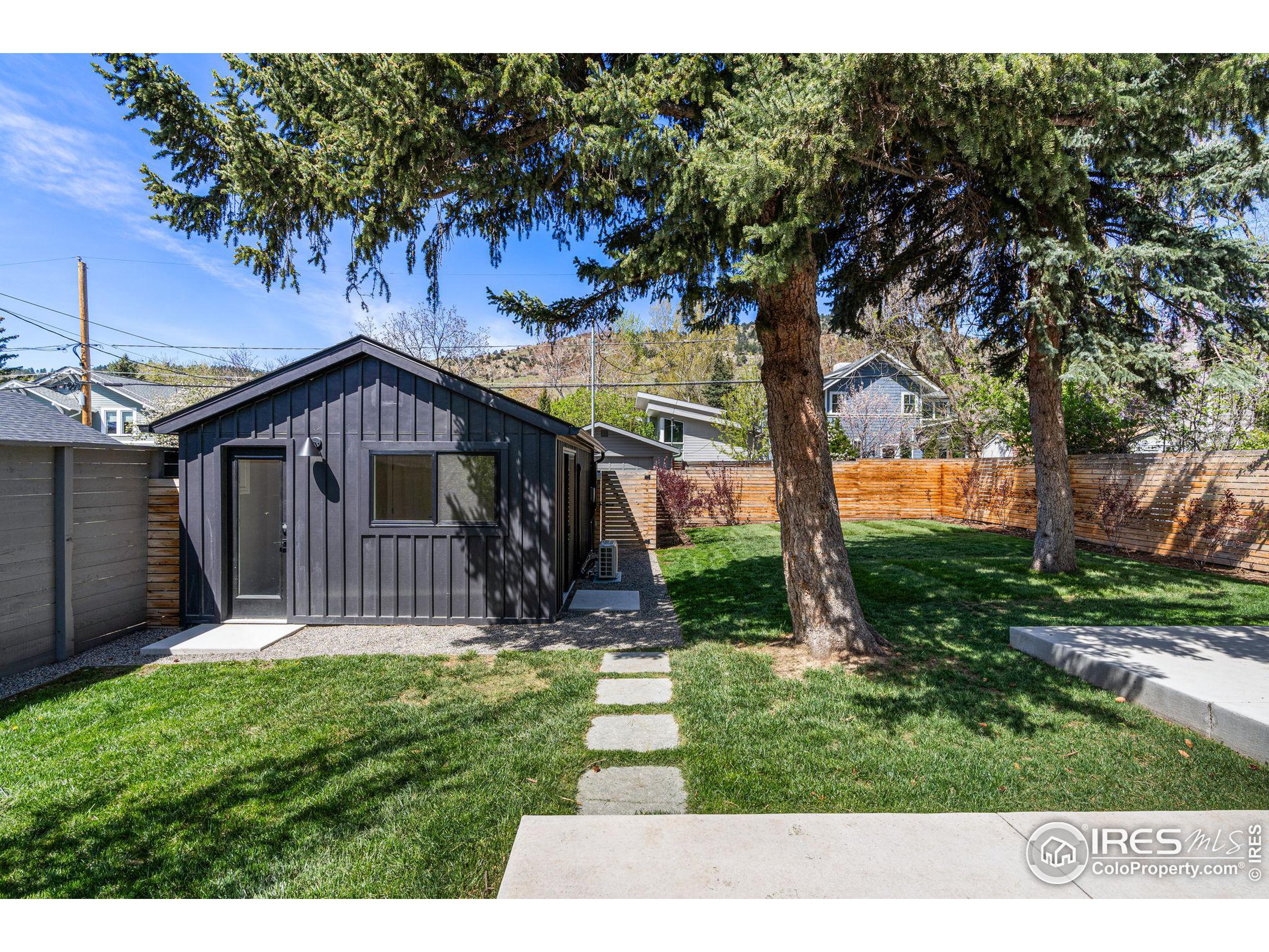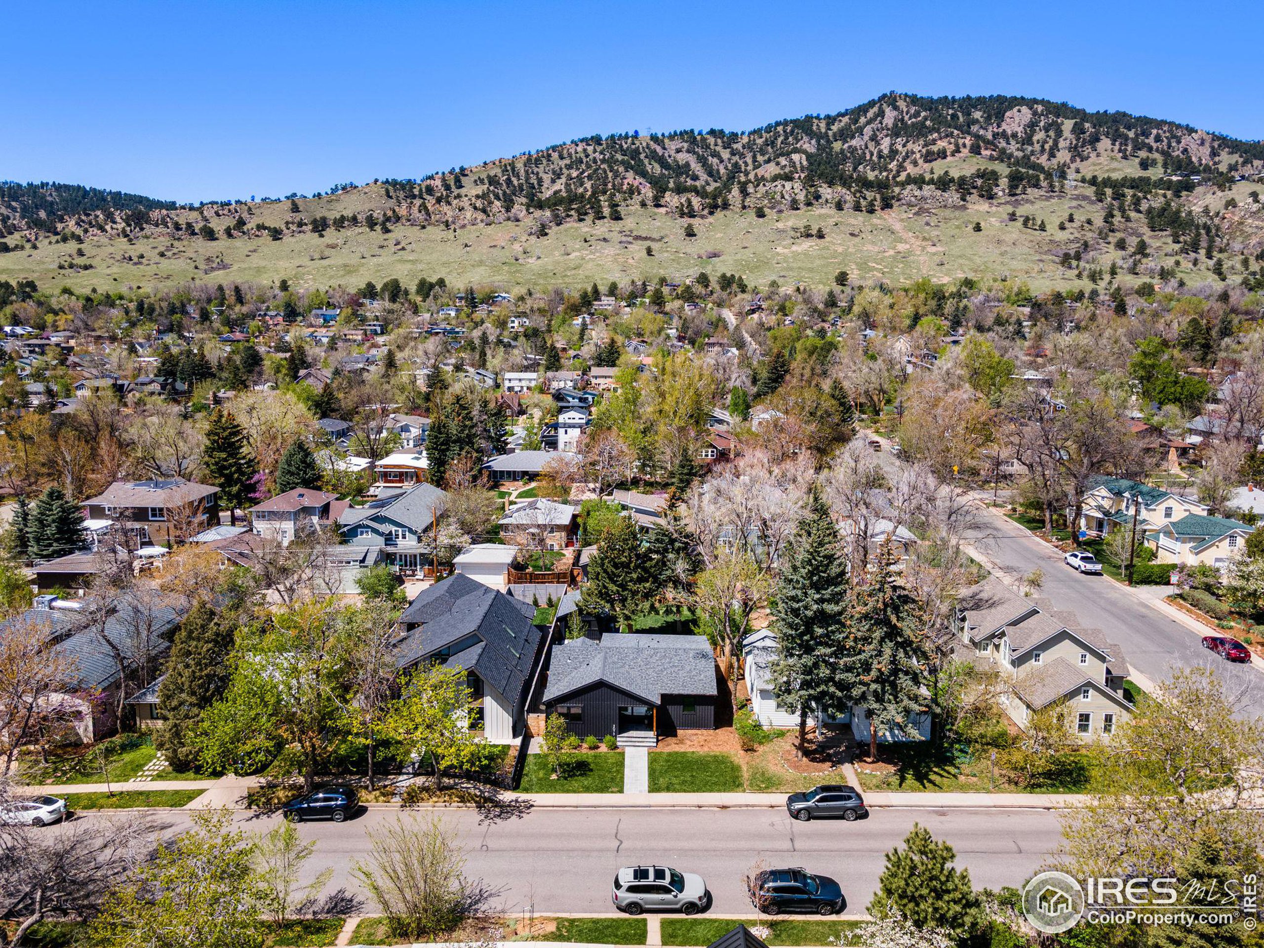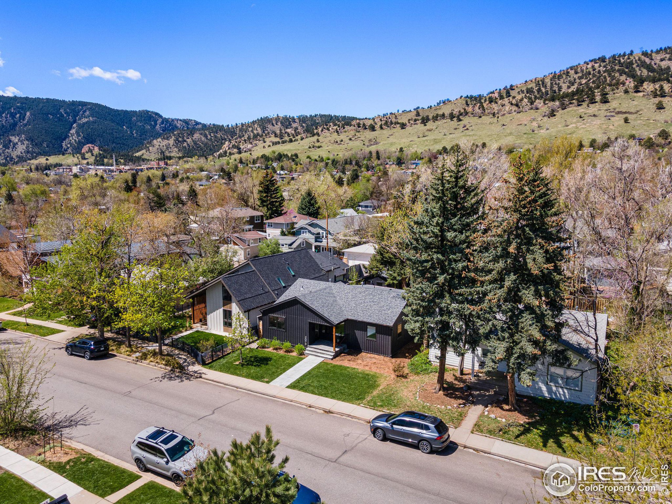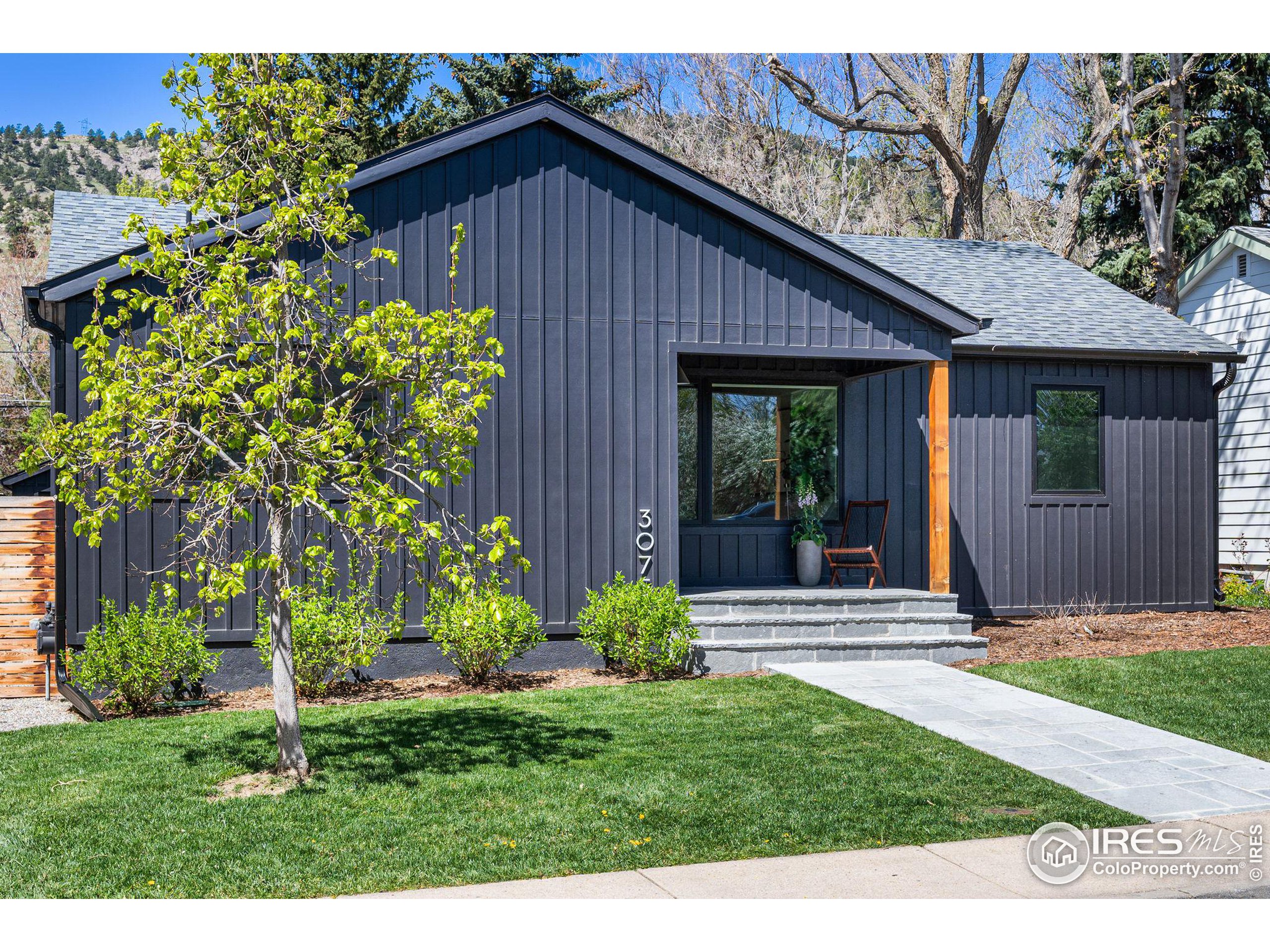This 1950's ranch was completely gutted and remodeled down to the studs -- feels like a highly stylized modern new home. Black board and batten siding with black windows, and a light, airy white interior make this a house of cool contrasts. Located just a block away from North Boulder Park and a few blocks from the rec center, Ideal Market area shops/cafes/restaurants, this home sits on a quiet and serene lot with privacy and Sanitas views. All new systems: new furnace with whole house humidifier, new A/C, new roof, all new kitchen, bathrooms, new detached office/rec room in garage remodel with mini-split for heating/cooling. Hot tub pad and electrical ready for your new spa set up. Enclosed dog run, detached garage with office conversion, and parking pad off alley. This property offers the best of Boulder living with quick access to trails, parks, downtown from a peaceful setting.