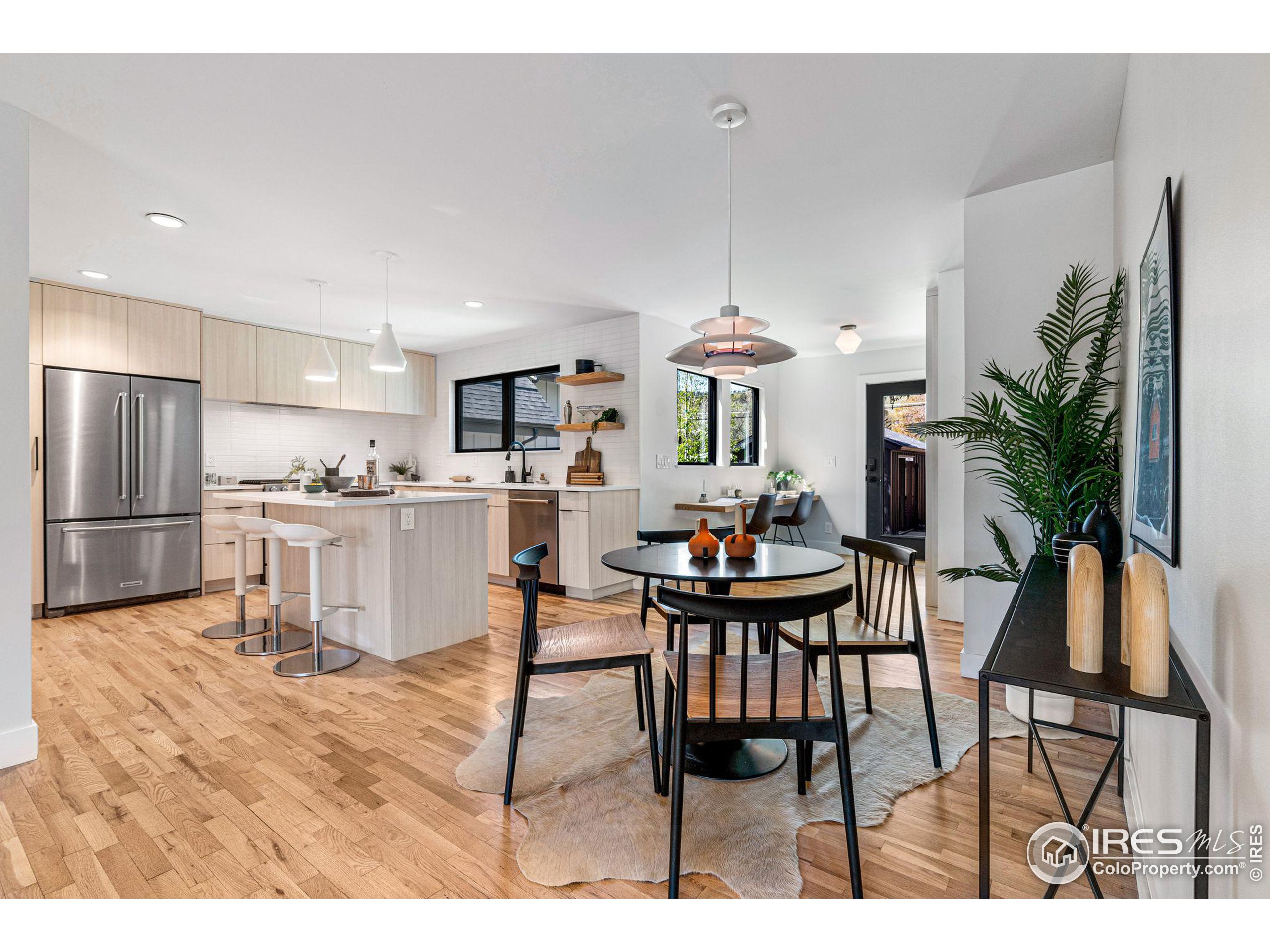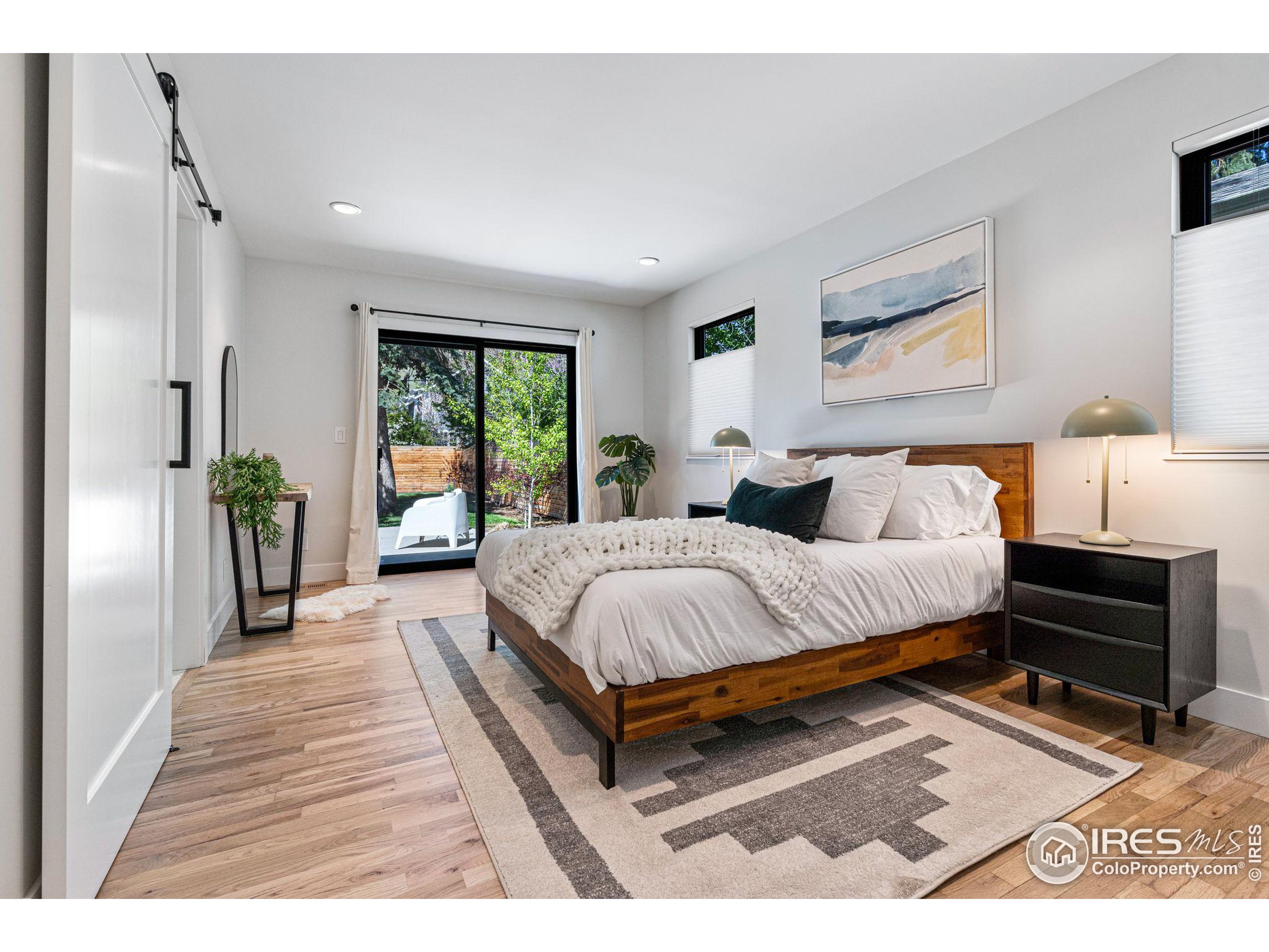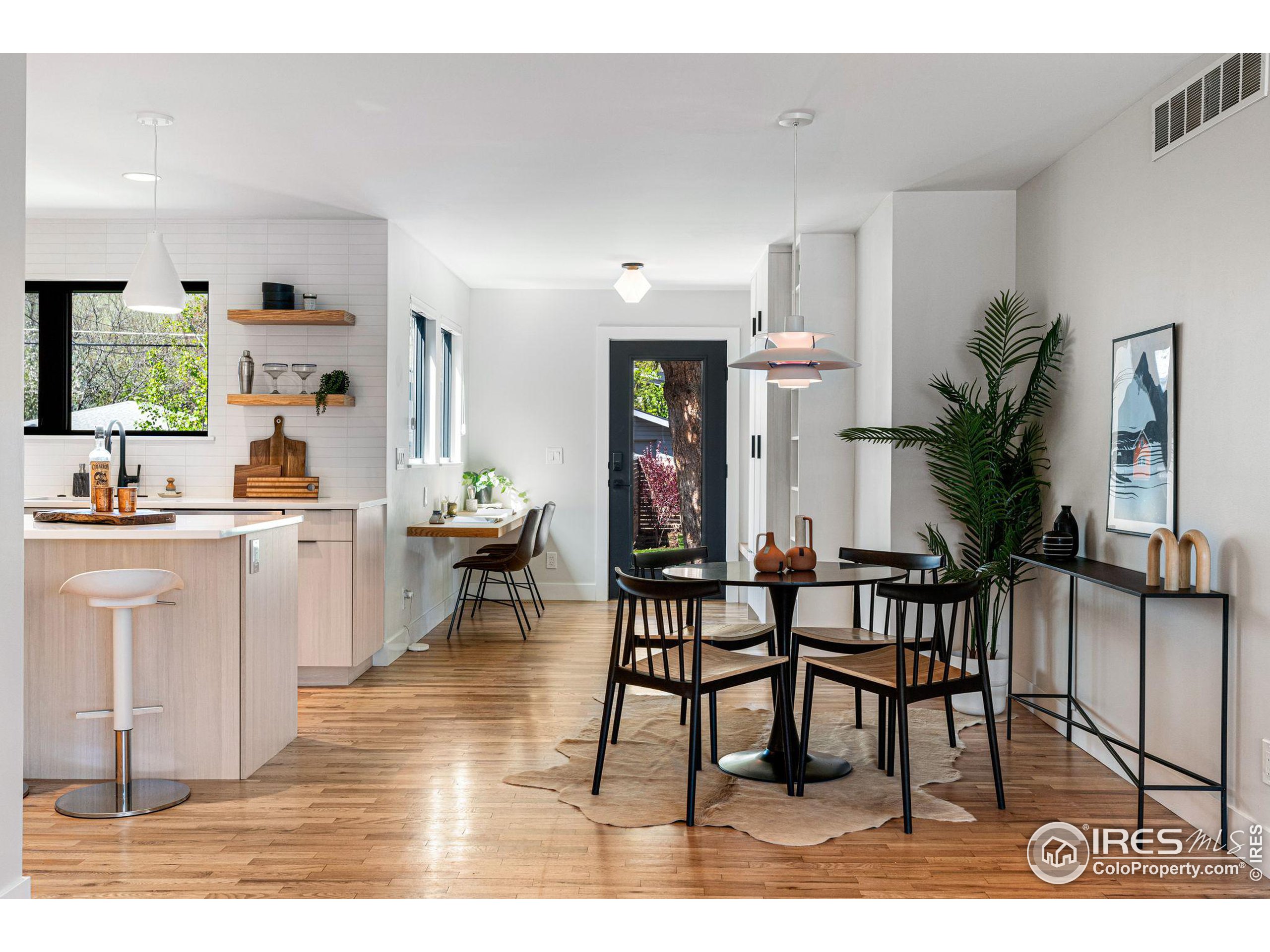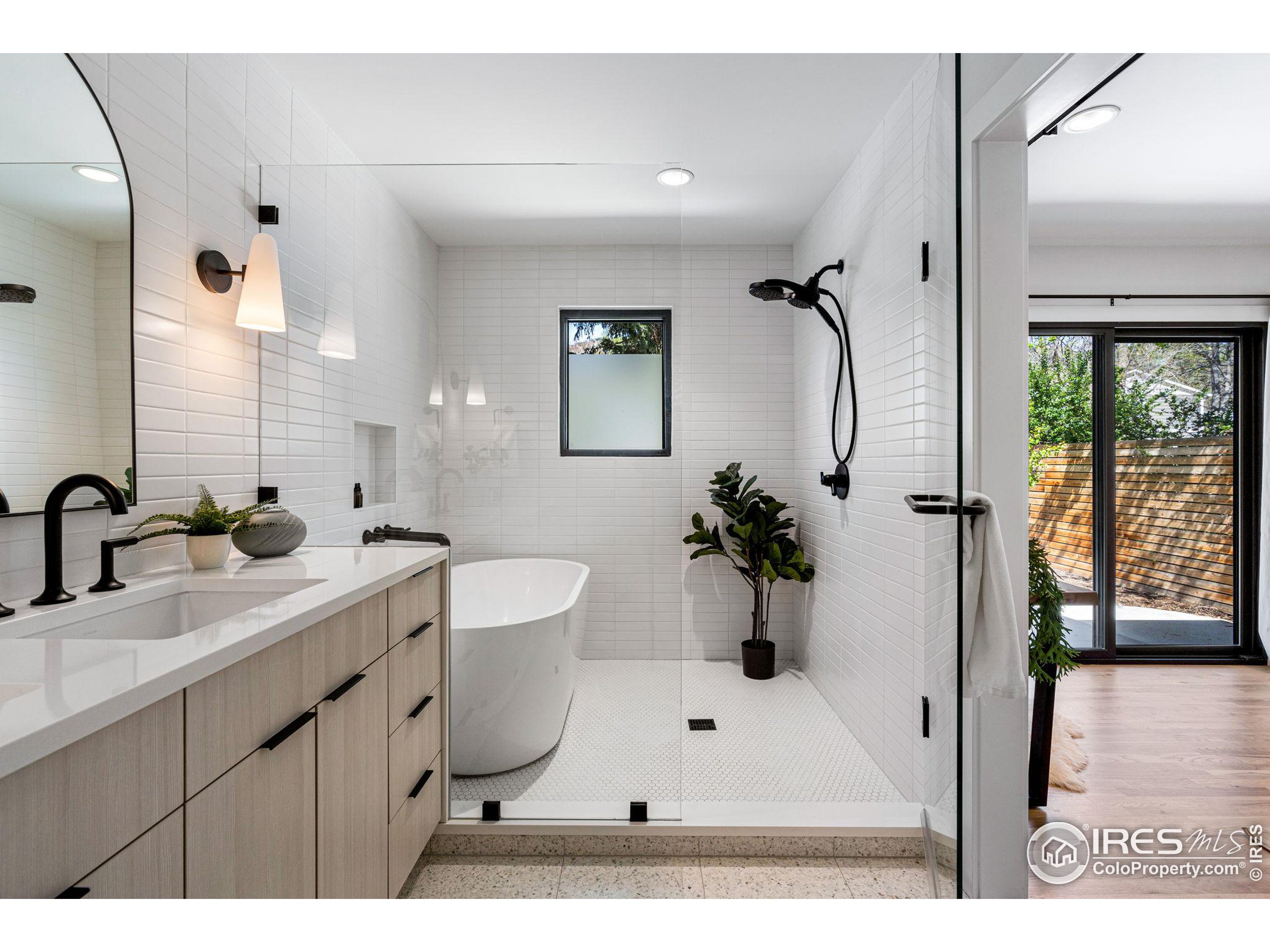 This 1950's ranch was completely gutted and remodeled down to the studs -- feels like a highly stylized modern new home. Black board and batten siding with black windows, and a light, airy white interior make this a house of cool contrasts. Located just a block away from North Boulder Park and a few blocks from the rec center, Ideal Market area shops/cafes/restaurants, this home sits on a quiet and serene lot with privacy and Sanitas views. All new systems: new furnace with whole house humidifier, new A/C, new roof, all new kitchen, bathrooms, new detached office/rec room in garage remodel with mini-split for heating/cooling. Hot tub pad and electrical ready for your new spa set up. Enclosed dog run, detached garage with office conversion, and parking pad off alley. This property offers the best of Boulder living with quick access to trails, parks, downtown from a peaceful setting.