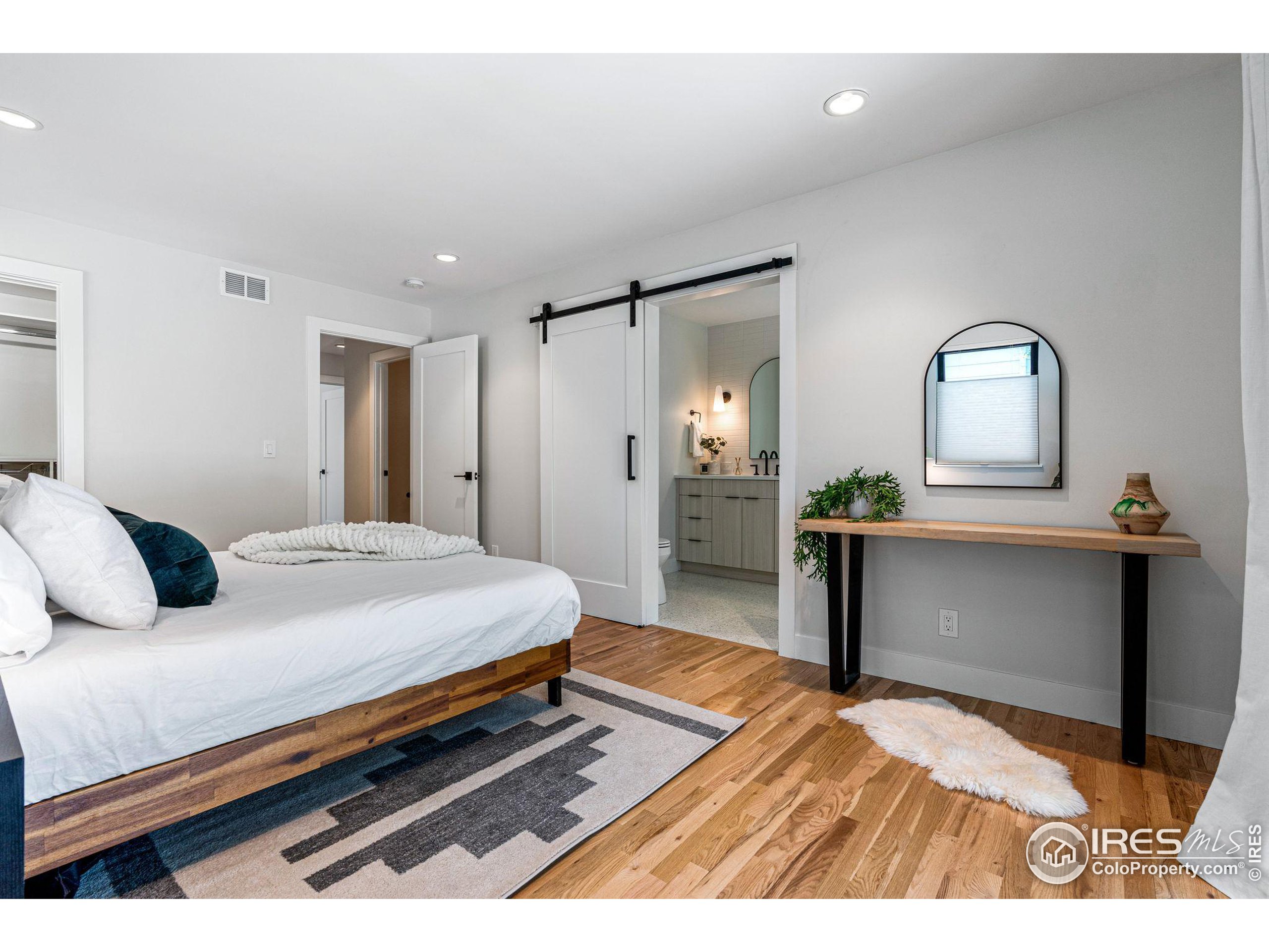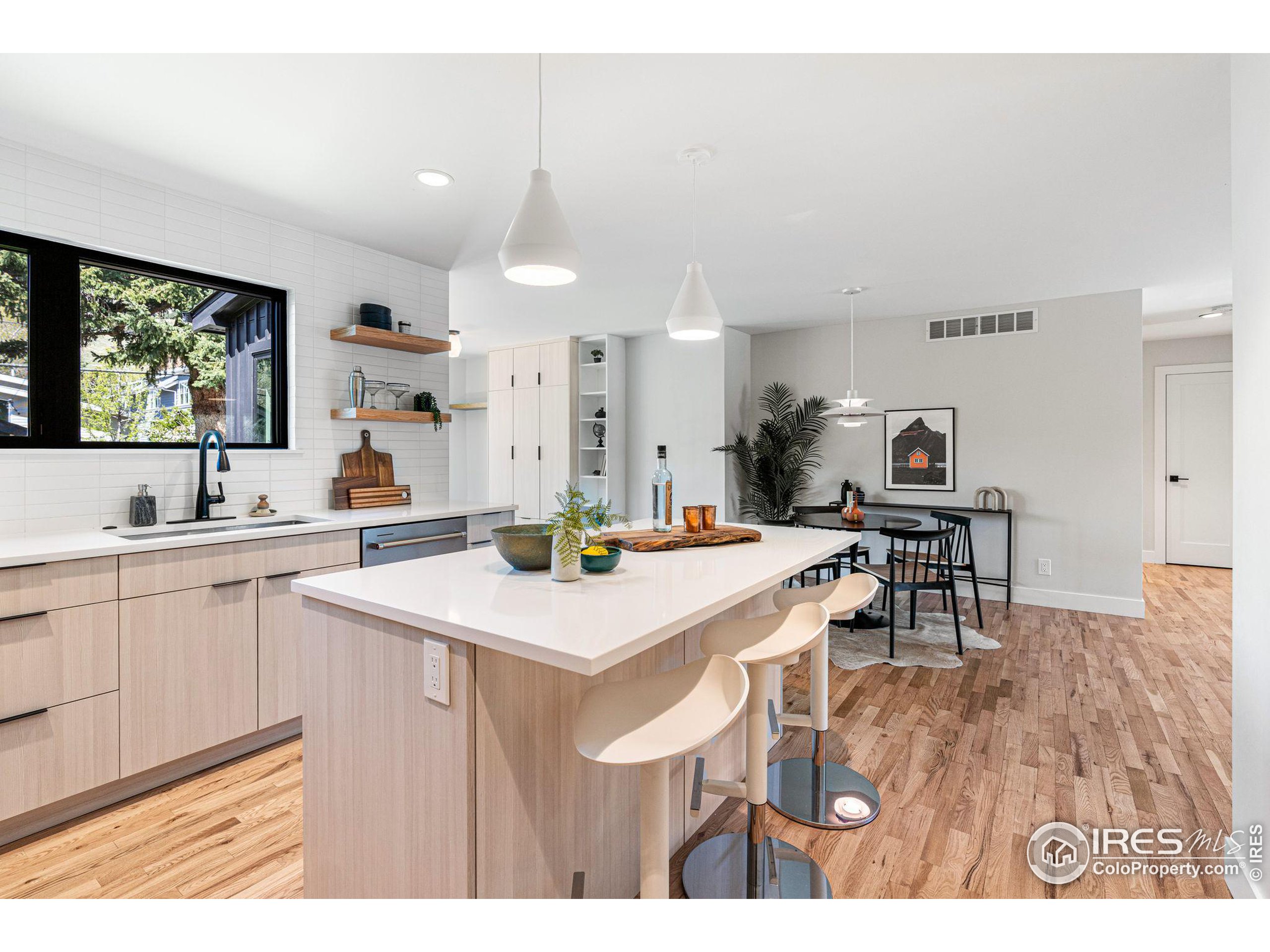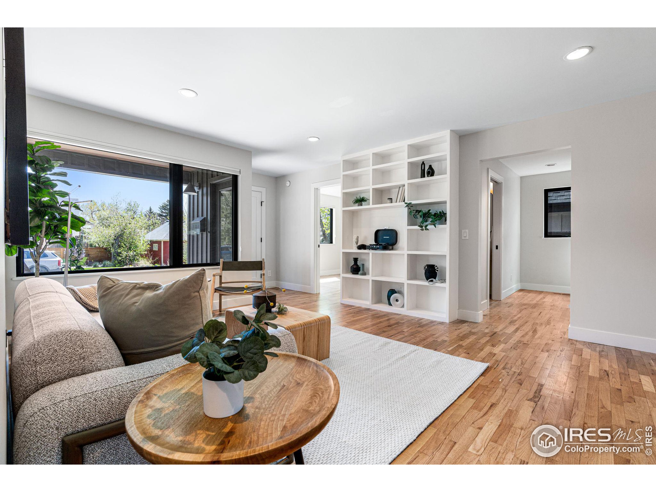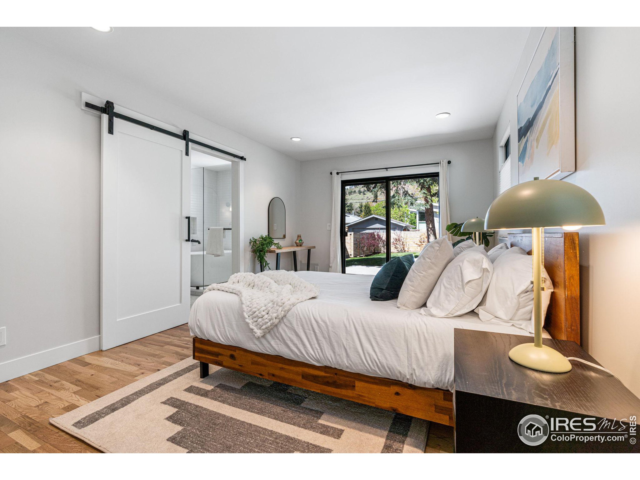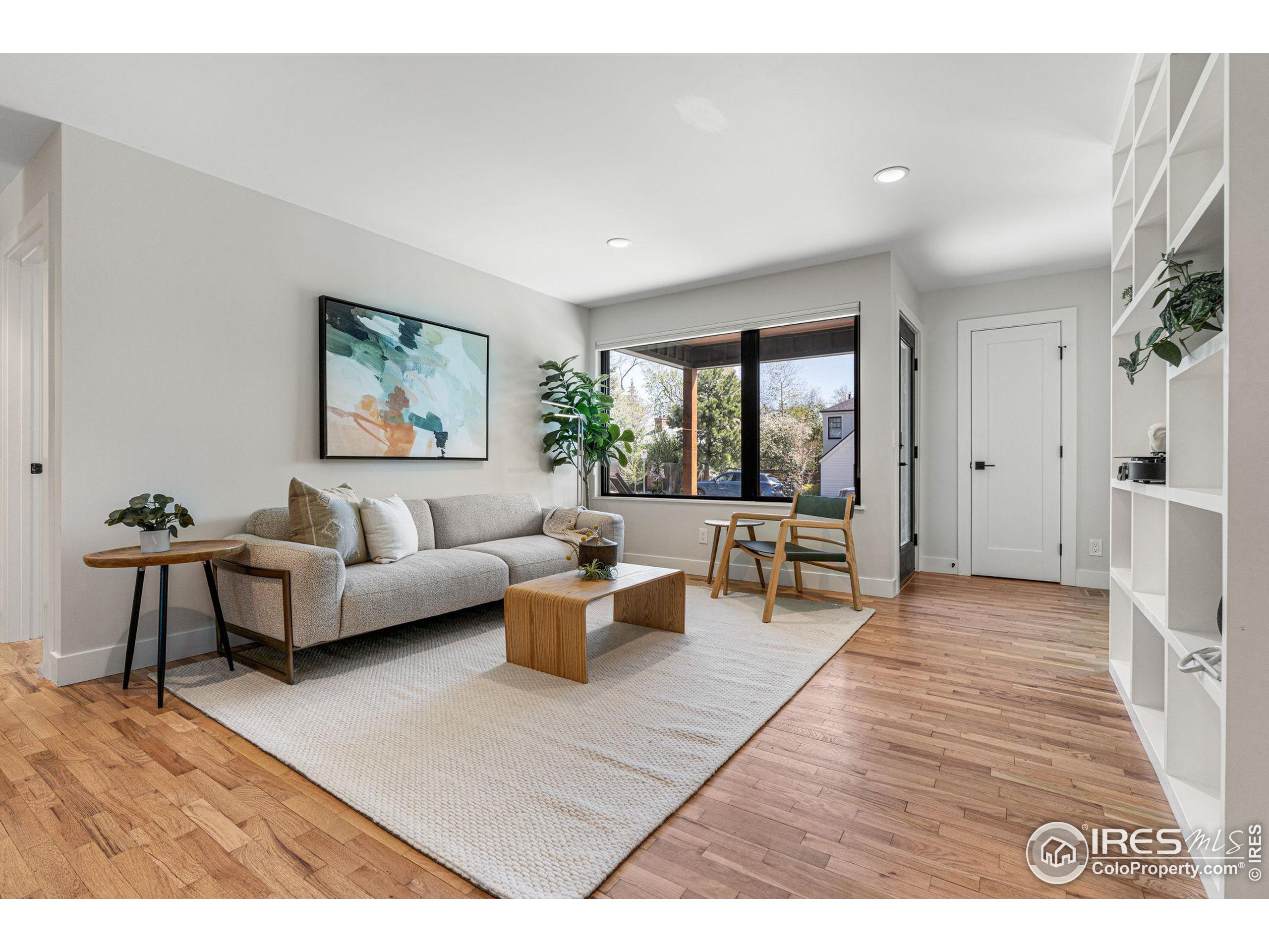 This 1950's ranch was completely gutted and remodeled down to the studs -- feels like a highly stylized modern new home. Black board and batten siding with black windows, and a light, airy white interior make this a house of cool contrasts. Located just a block away from North Boulder Park and a few blocks from the rec center, Ideal Market area shops/cafes/restaurants, this home sits on a quiet and serene lot with privacy and Sanitas views. All new systems: new furnace with whole house humidifier, new A/C, new roof, all new kitchen, bathrooms, new detached office/rec room in garage remodel with mini-split for heating/cooling. Hot tub pad and electrical ready for your new spa set up. Enclosed dog run, detached garage with office conversion, and parking pad off alley. This property offers the best of Boulder living with quick access to trails, parks, downtown from a peaceful setting.