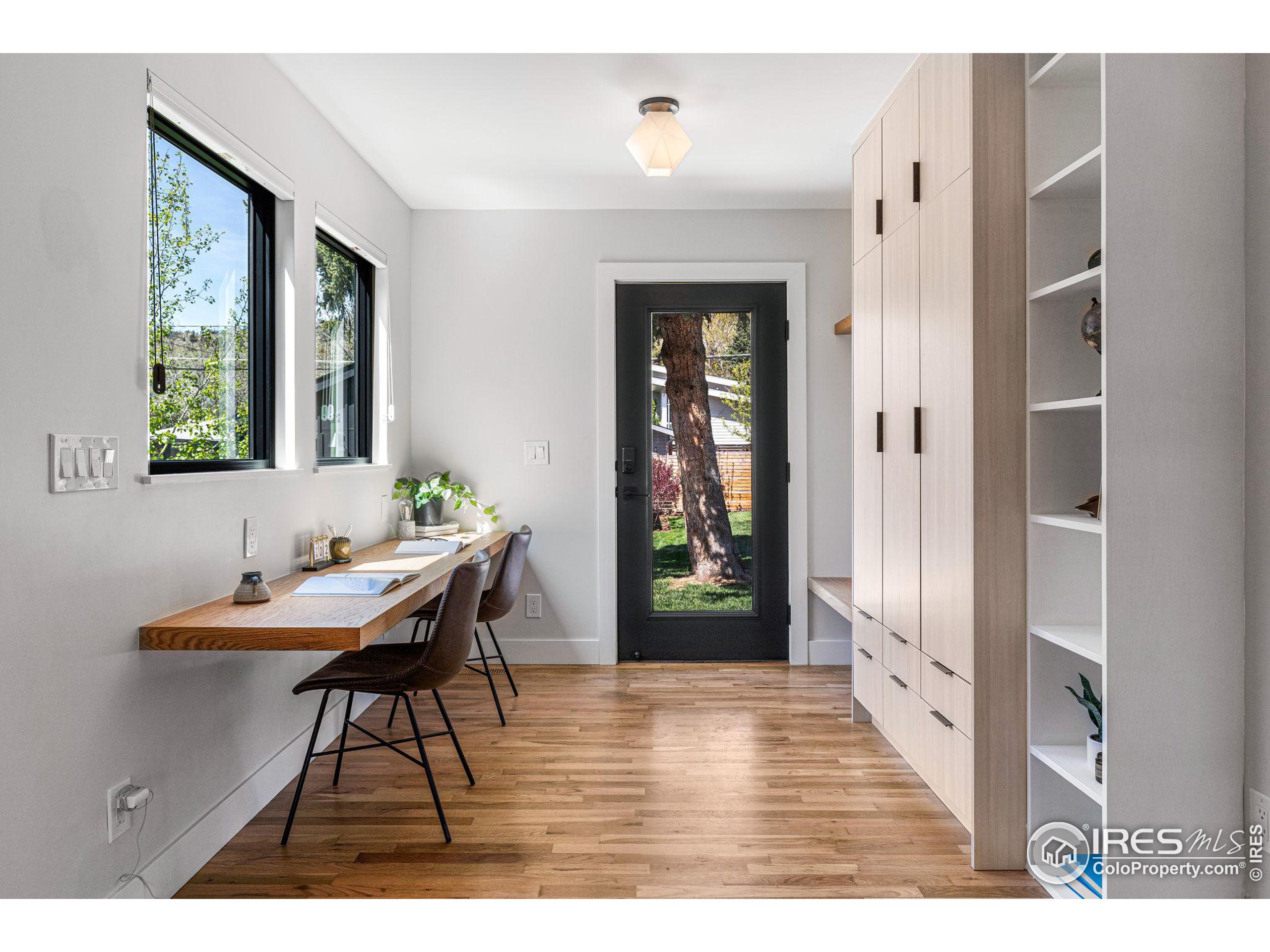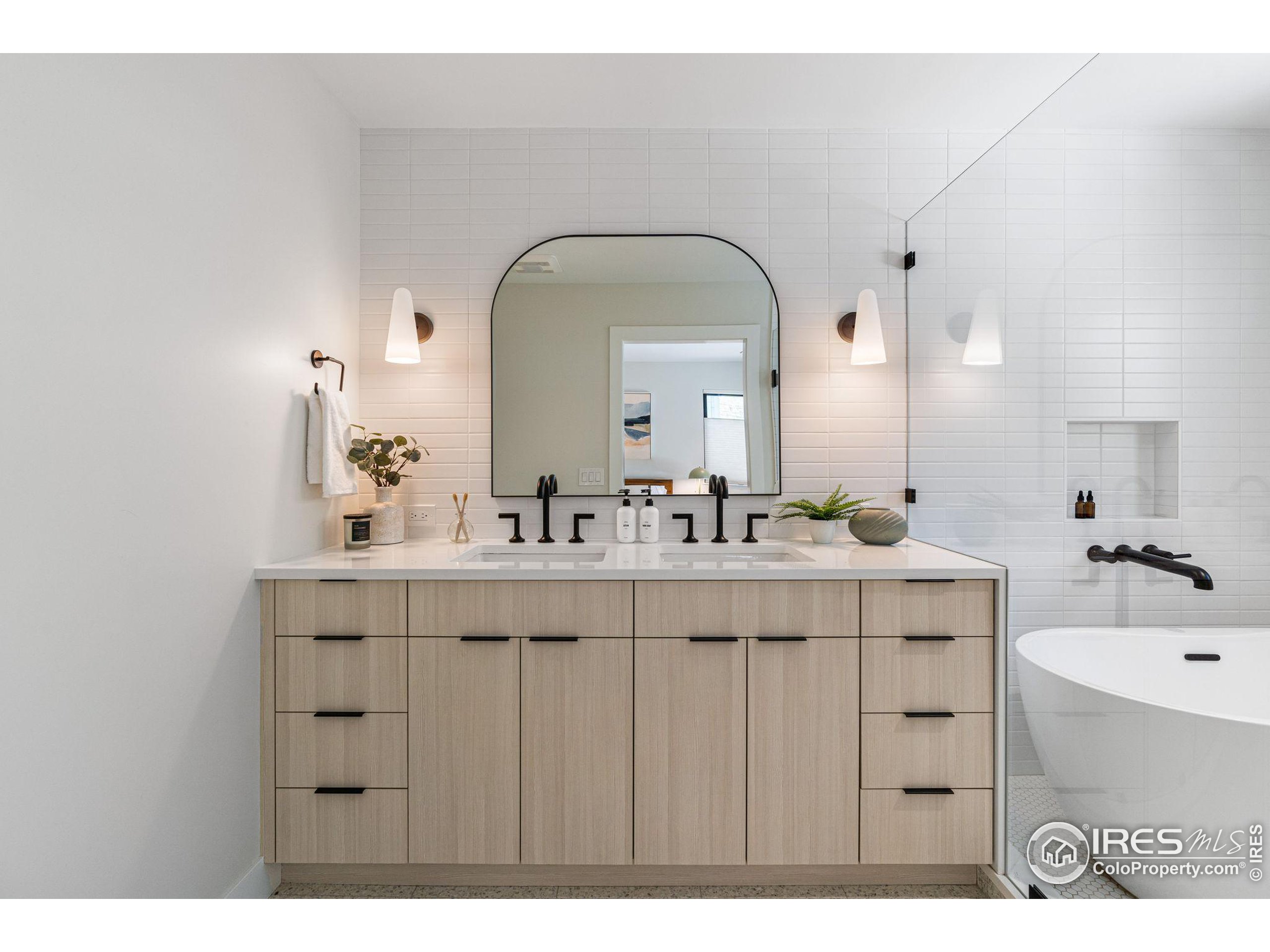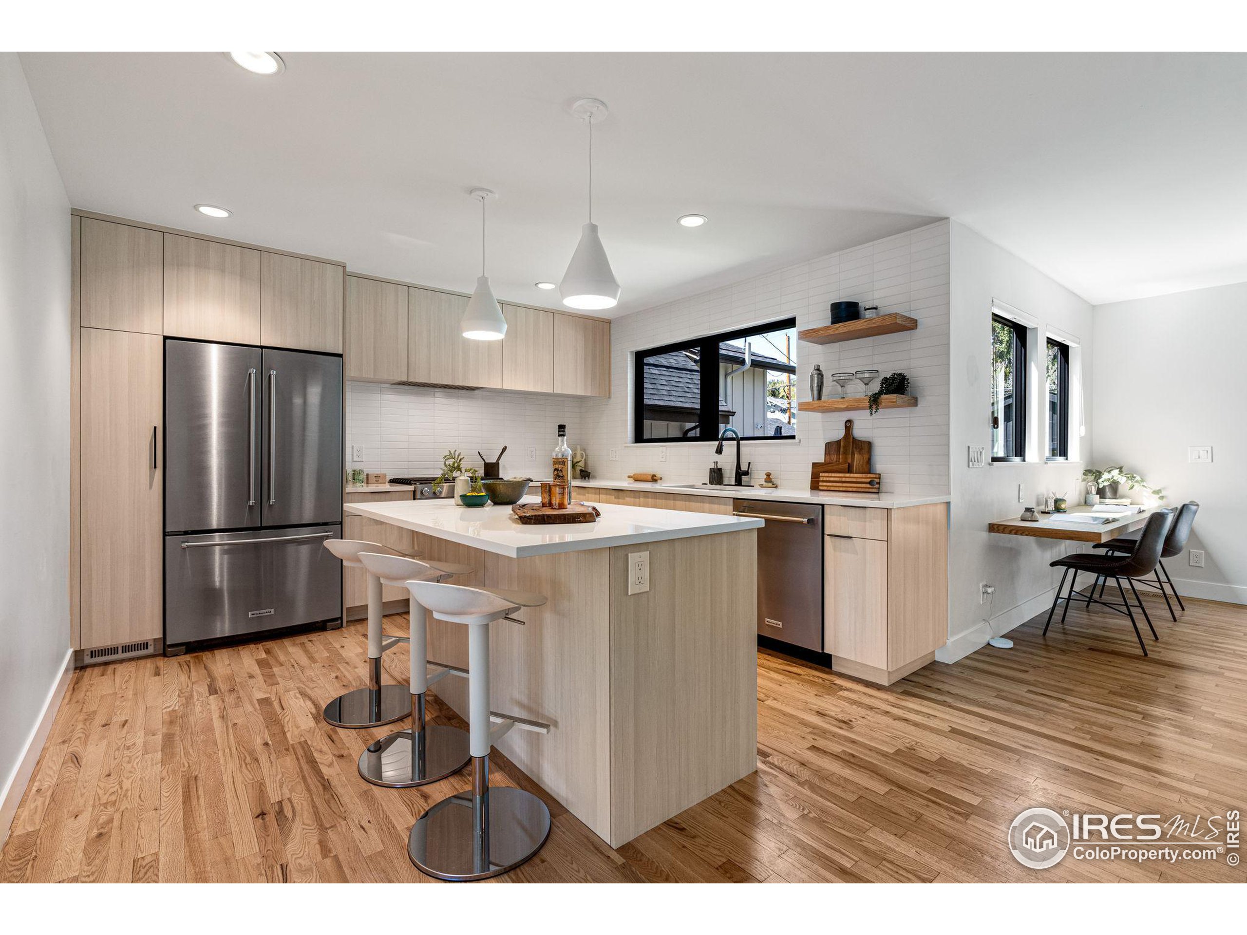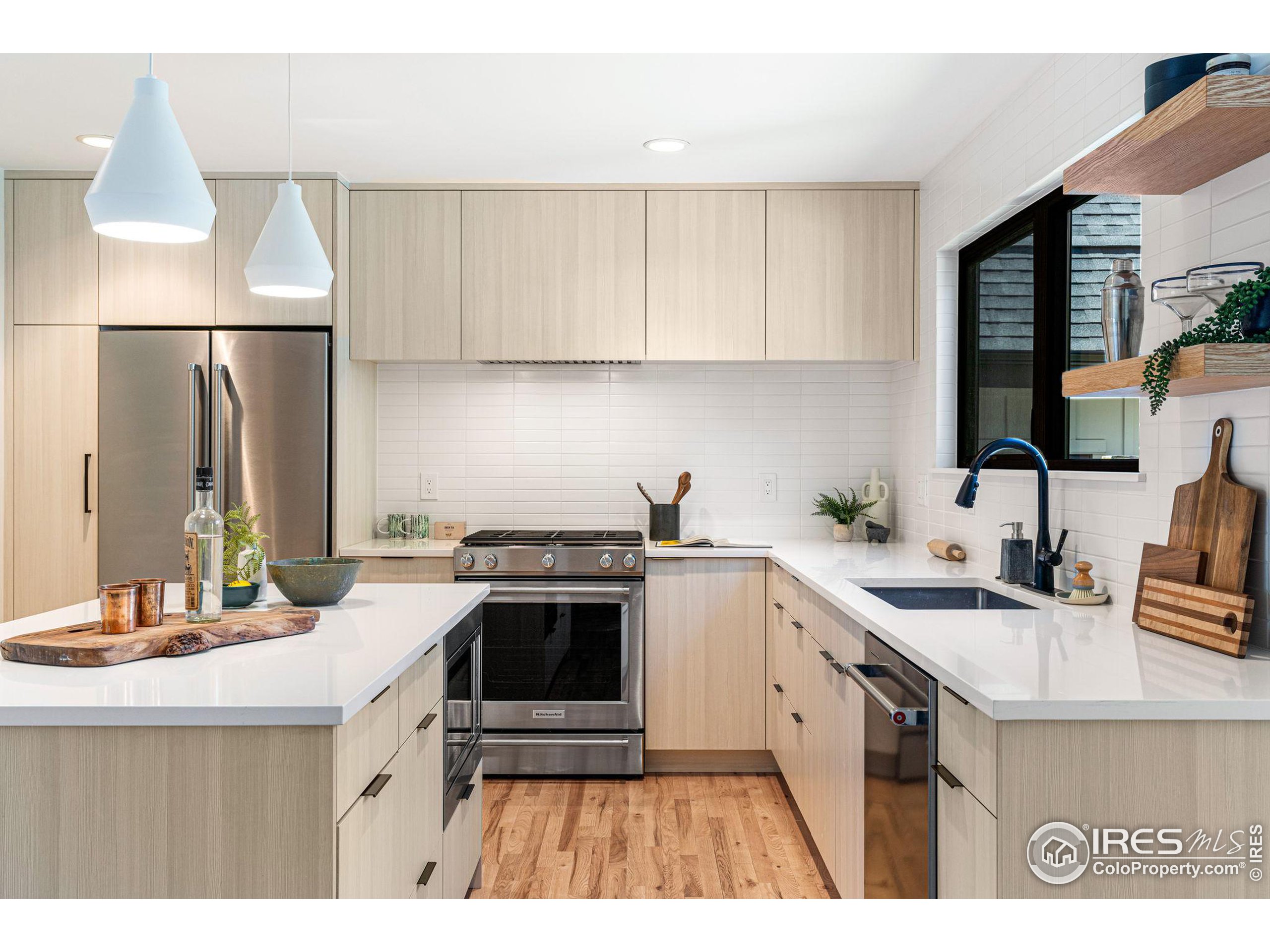 This 1950's ranch was completely gutted and remodeled down to the studs -- feels like a highly stylized modern new home. Black board and batten siding with black windows, and a light, airy white interior make this a house of cool contrasts. Located just a block away from North Boulder Park and a few blocks from the rec center, Ideal Market area shops/cafes/restaurants, this home sits on a quiet and serene lot with privacy and Sanitas views. All new systems: new furnace with whole house humidifier, new A/C, new roof, all new kitchen, bathrooms, new detached office/rec room in garage remodel with mini-split for heating/cooling. Hot tub pad and electrical ready for your new spa set up. Enclosed dog run, detached garage with office conversion, and parking pad off alley. This property offers the best of Boulder living with quick access to trails, parks, downtown from a peaceful setting.
