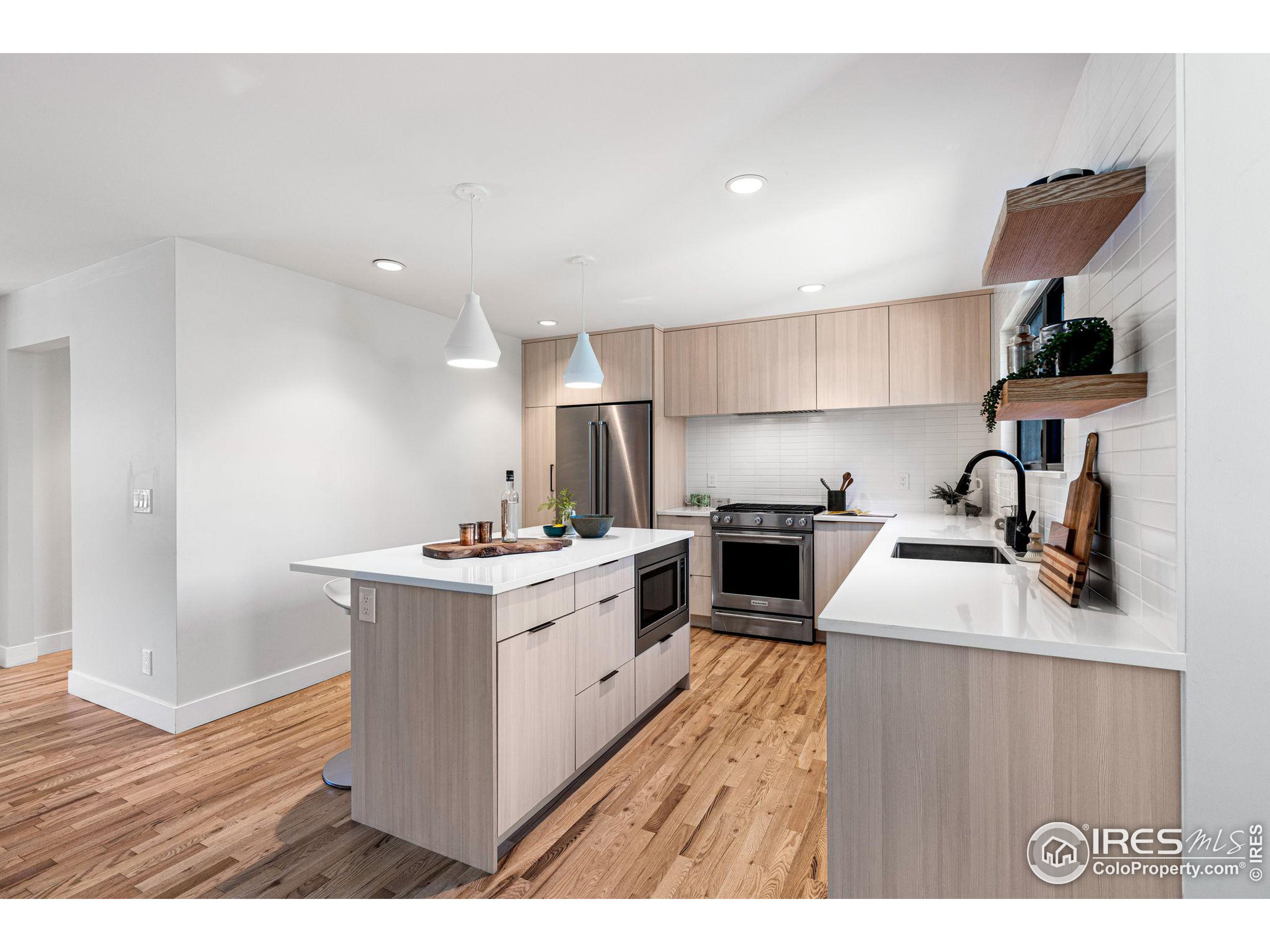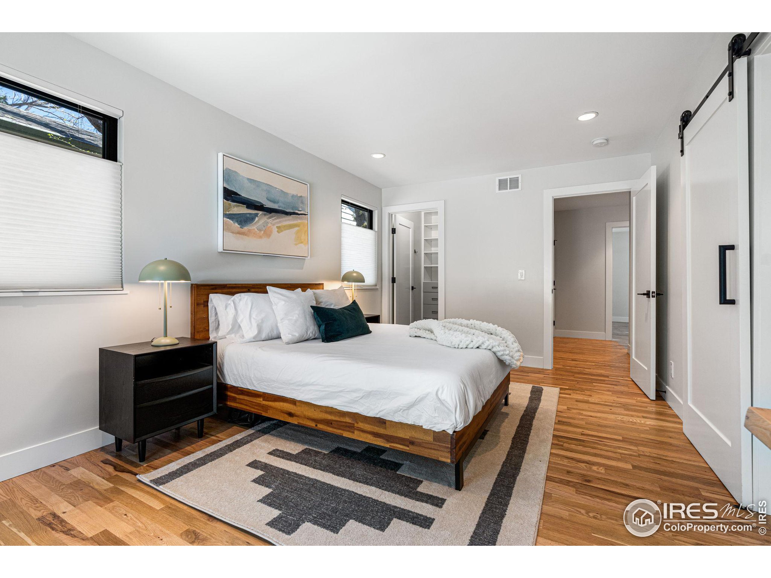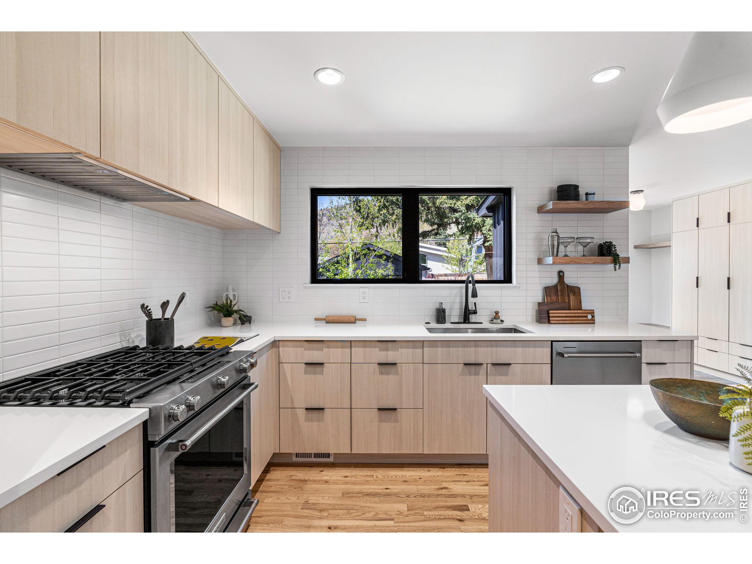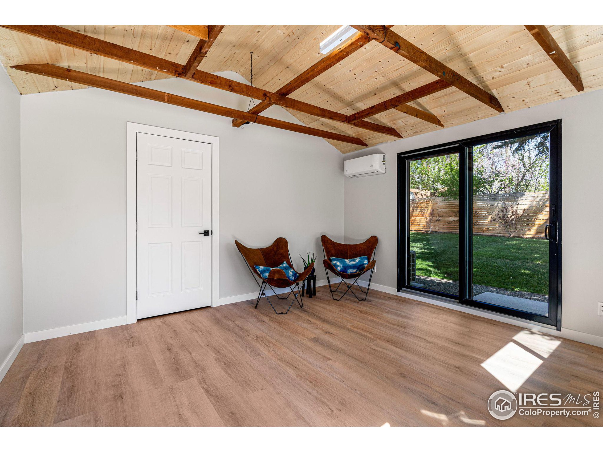 This 1950's ranch was completely gutted and remodeled down to the studs -- feels like a highly stylized modern new home. Black board and batten siding with black windows, and a light, airy white interior make this a house of cool contrasts. Located just a block away from North Boulder Park and a few blocks from the rec center, Ideal Market area shops/cafes/restaurants, this home sits on a quiet and serene lot with privacy and Sanitas views. All new systems: new furnace with whole house humidifier, new A/C, new roof, all new kitchen, bathrooms, new detached office/rec room in garage remodel with mini-split for heating/cooling. Hot tub pad and electrical ready for your new spa set up. Enclosed dog run, detached garage with office conversion, and parking pad off alley. This property offers the best of Boulder living with quick access to trails, parks, downtown from a peaceful setting.