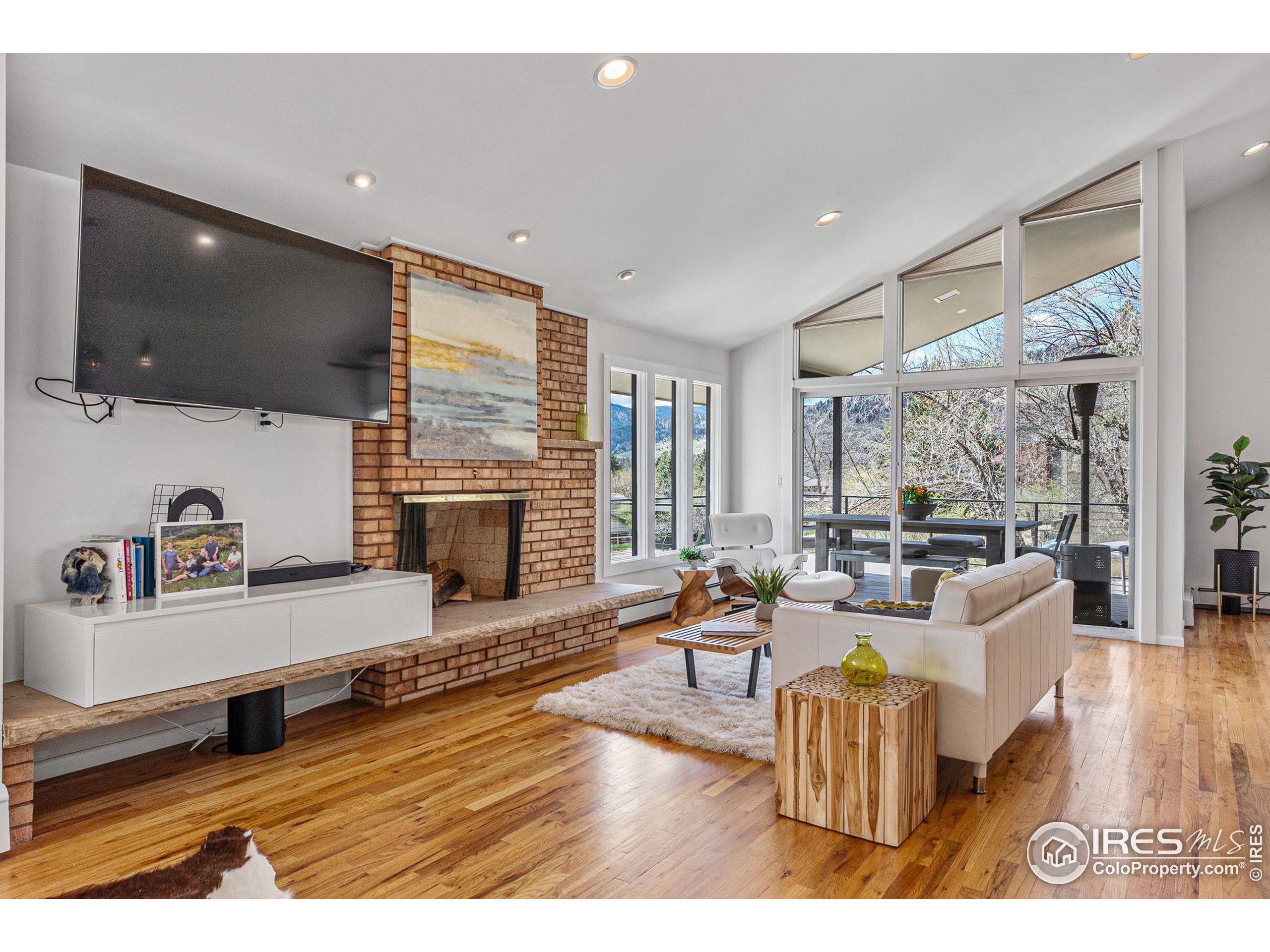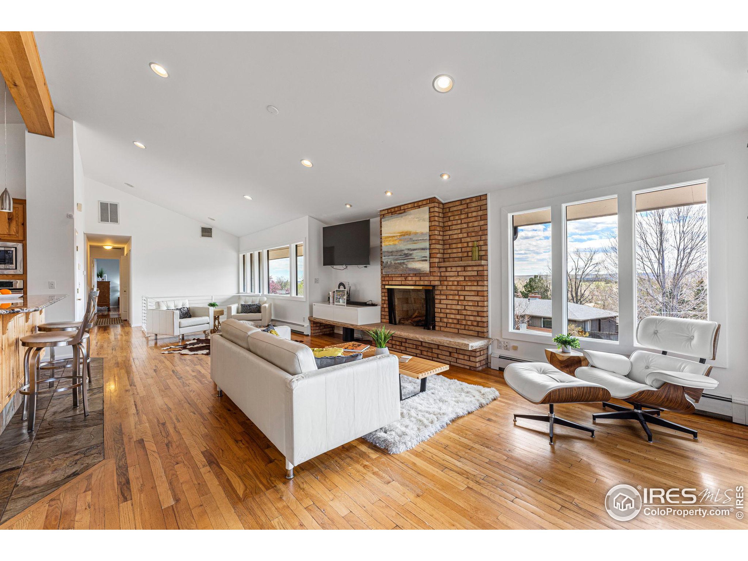 Views, views, views! These are the Flatiron Views you've been waiting for! Feel like you're on top of the world, perched on a hill with breathtaking Flatiron views on this mid-century inspired home on a large North Boulder lot near Lucky's Market, Wonderland Lake & neighborhood park! The covered south/west-facing deck is perfect for entertaining, watching the fireworks, or just watching the clouds roll in! Soaring vaulted ceilings and ample windows flood this home with natural light and allow for flatiron views from almost every south-facing window!! Generous spaces center around a huge kitchen, great room & dining area with wood-burning fireplace. 4 bedrooms on the same level, all with wood floors & ample closet space. The lower level has a cozy family room, a bedroom, full bath, an exercise rm & a large laundry room. 2 wood-burning fireplaces, 4.9 Kw Solar PV installed by Namaste w/10-yr warranty. Large garage with workshop area and extra storage closets, Circular drive and ample driveway space for parking. Move right in & enjoy, or design your dream home with spectacular views!