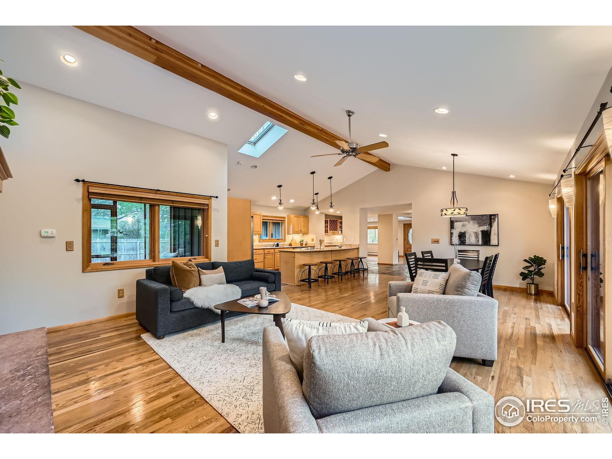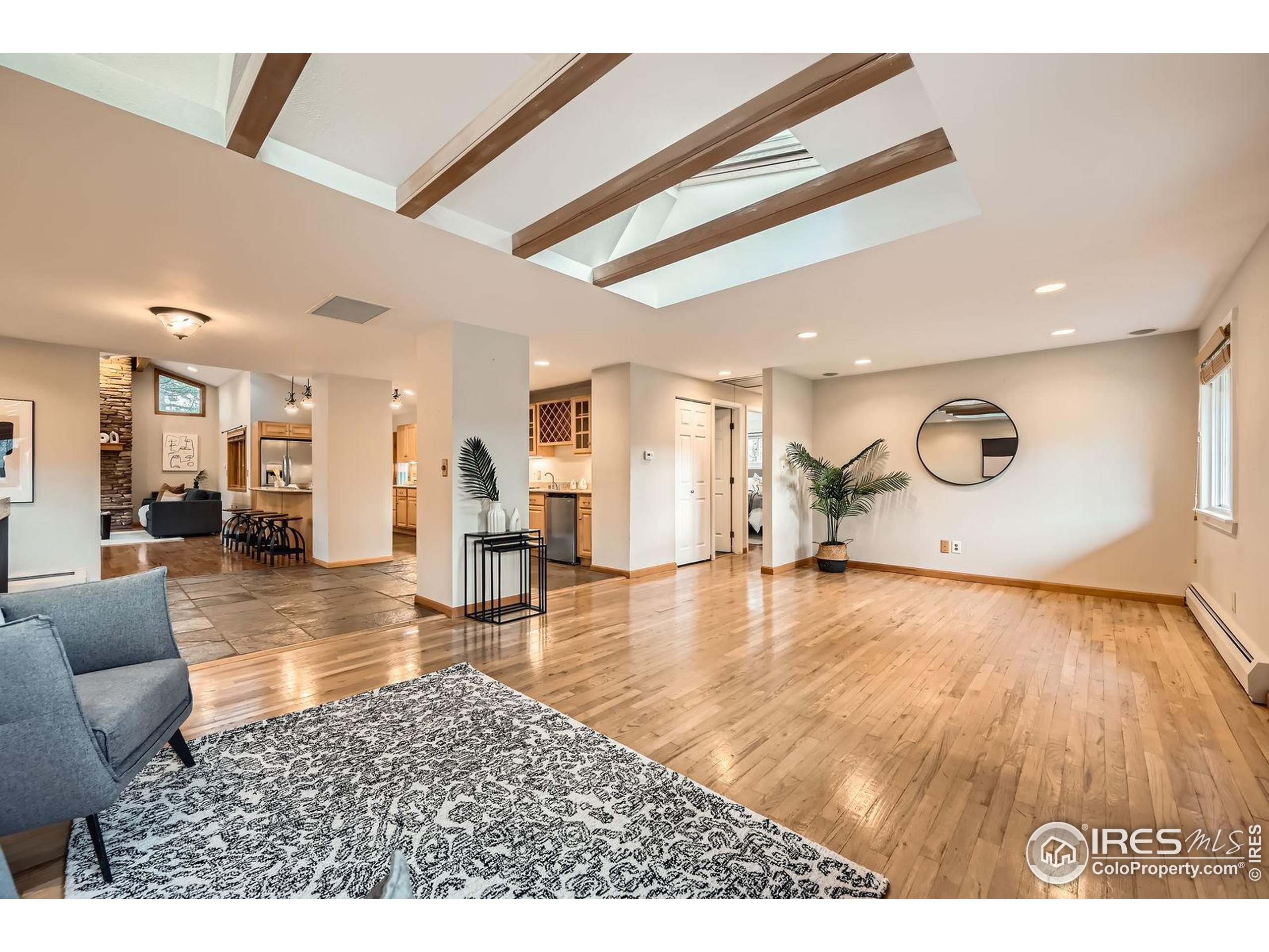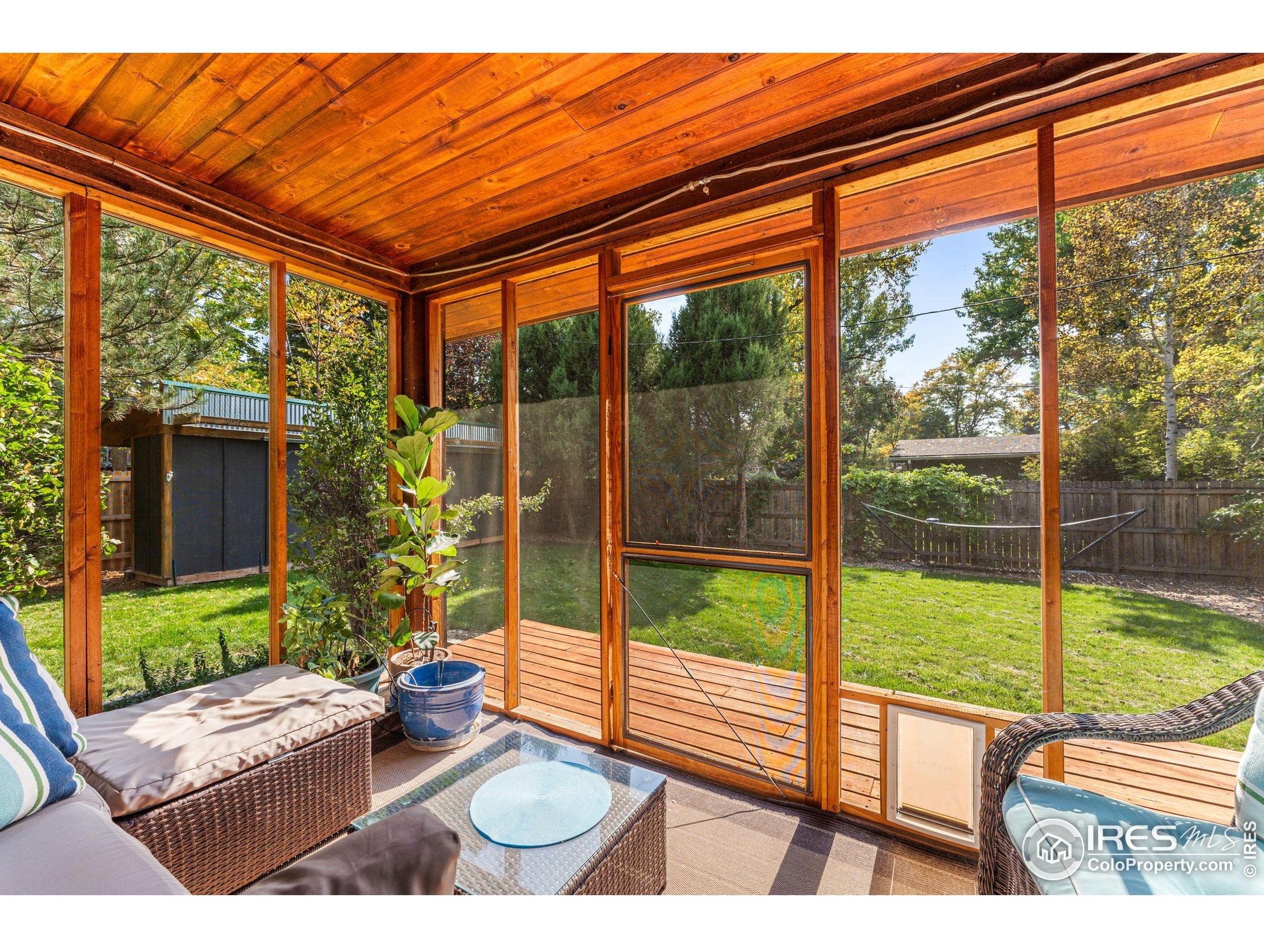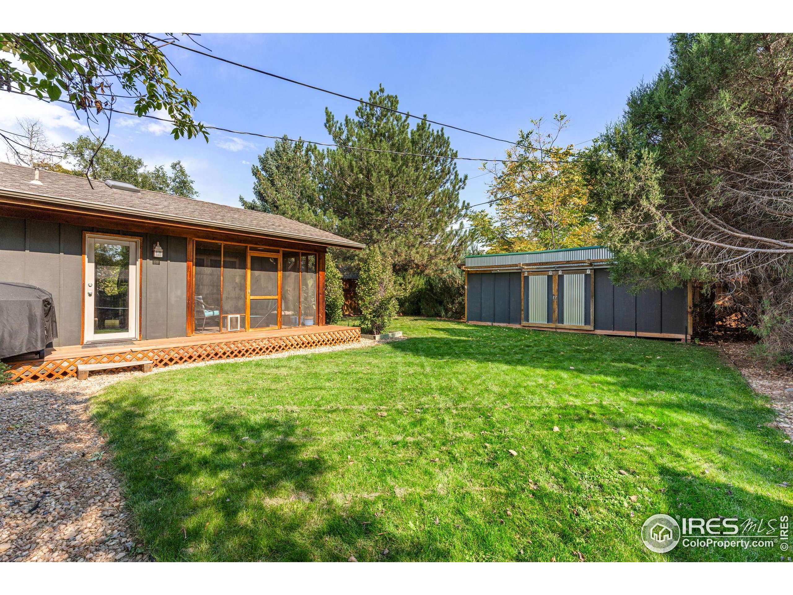 This Gunbarrel Estates home has a warm, Colorado mountain meets coastal Maine feel. From the sweet screened-in porch and private yard with hot tub, to the gas fireplace with massive stone surround and wall of sliding glass doors, this property exudes peace and comfort. As you enter the home, you are greeted by a living area with bright skylights and well-designed wood beams. From there, you are beckoned into a wet bar area, then the spacious, open kitchen, dining and family rooms. The main level features the primary suite and 2nd bedroom, both with hardwood floors and ample light. The basement offers two more bedrooms, a full bath, a large great room, laundry and generous storage area. In the backyard, you will find a long storage shed perfect for tools, equipment, toys and gear as well as a detached office/studio space. The two car garage has separation between the two bays. Gunbarrel Estates is characterized by wide, quiet streets and a huge neighborhood park which is only one block away. The park has tennis and basketball courts, grassy fields, a playground and seasonal community events. The local trail system conveniently leads to Boulder and Niwot. Gunbarrel shops and restaurants are a quick few minutes away and Boulder is an easy 15 minute drive.